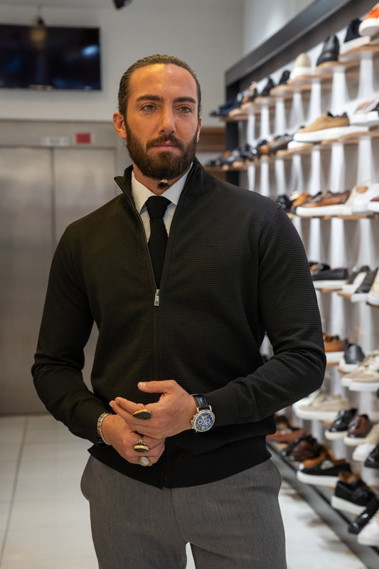 HolloMen Olive Green Ribbed Long-Sleeve Polo Sweater.