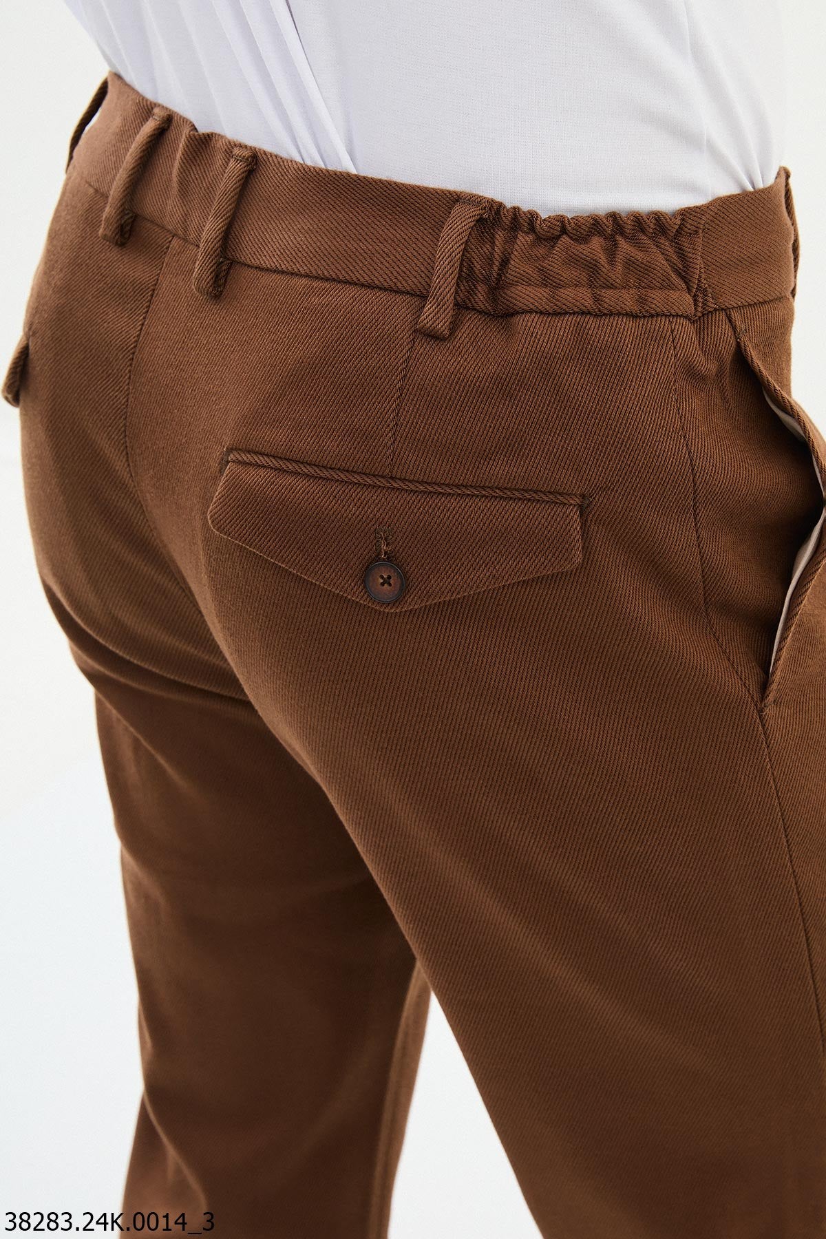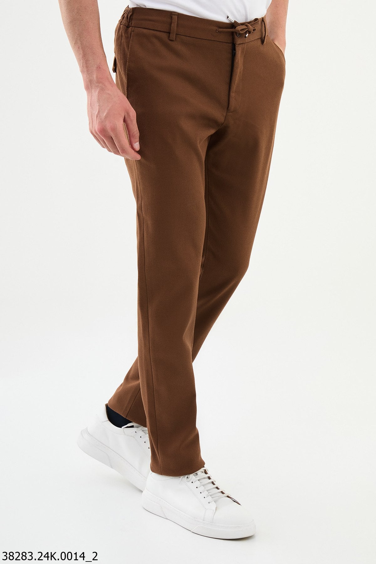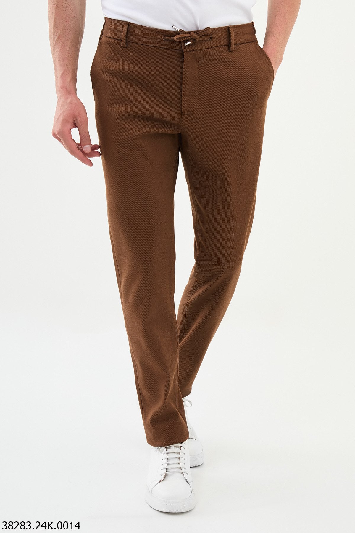 Men's Slim-Fit Tile Brown Trousers with Adjustable Waistband.