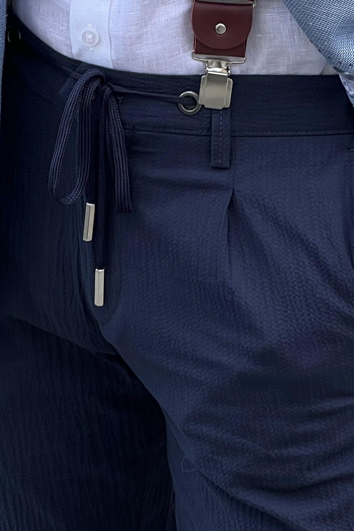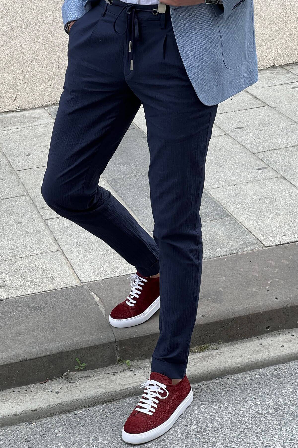 Wir präsentieren eine Slim-Fit-Hose in Marineblau.