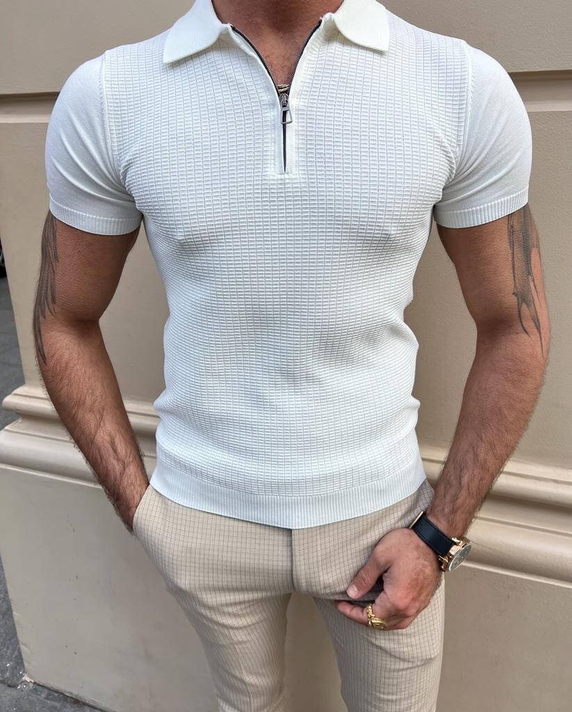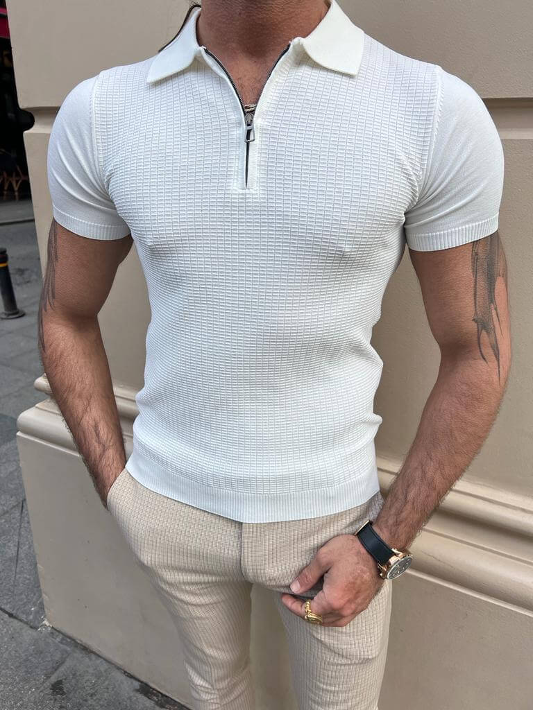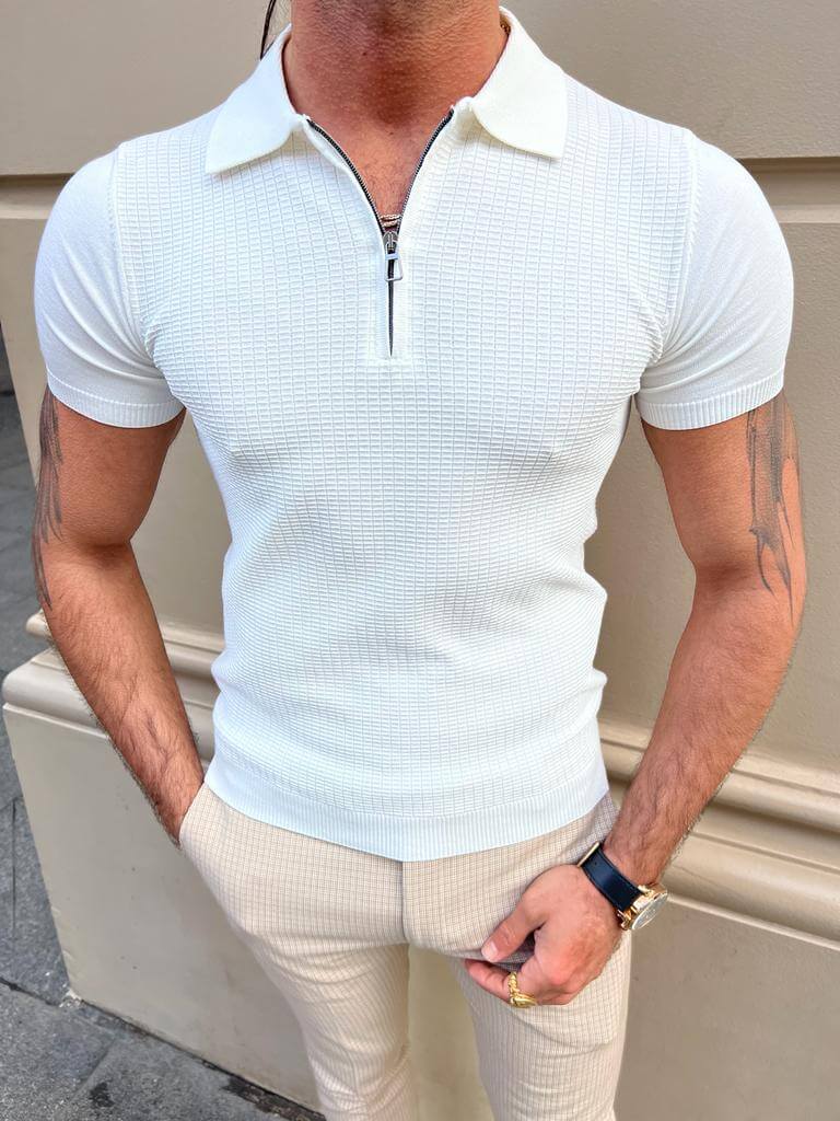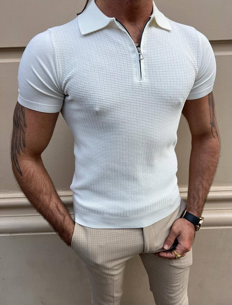 Weißes Polo-T-Shirt mit Reißverschlussdetail