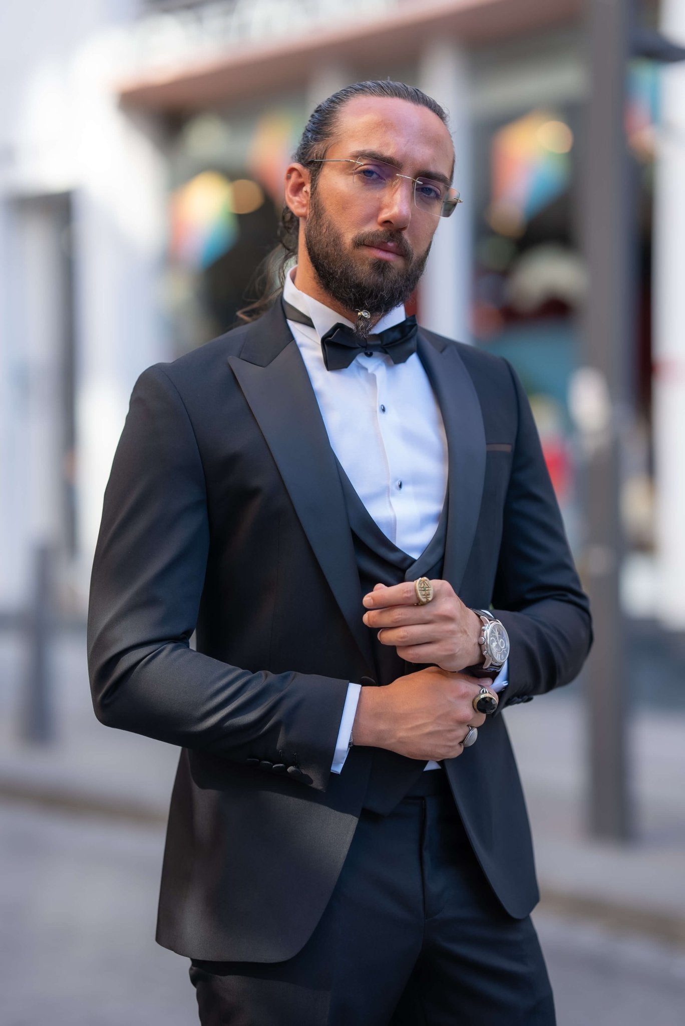 Experimenta una elegancia sin igual con nuestro esmoquin negro con detalles. Esta prenda, que capta todas las miradas, redefine la sofisticación con su diseño impecable y su elegancia incomparable. Eleva tu vestuario formal con la opción de moda definitiva.