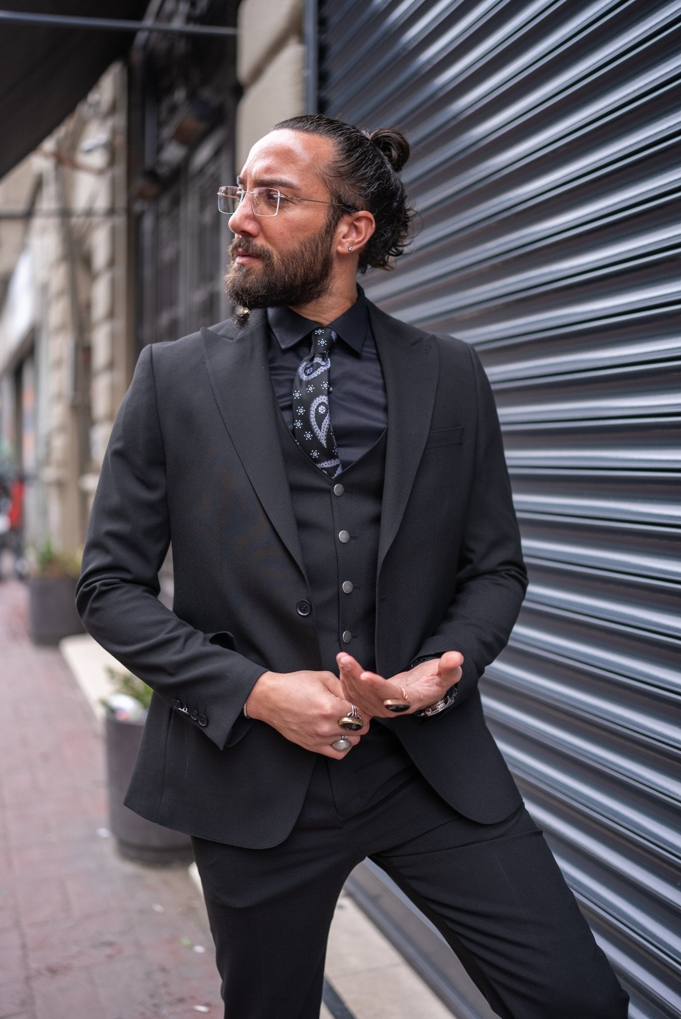 Vístase para impresionar y hacer una declaración audaz con nuestro traje negro impecablemente confeccionado. Eleva tu juego de estilo y llama la atención con confianza.