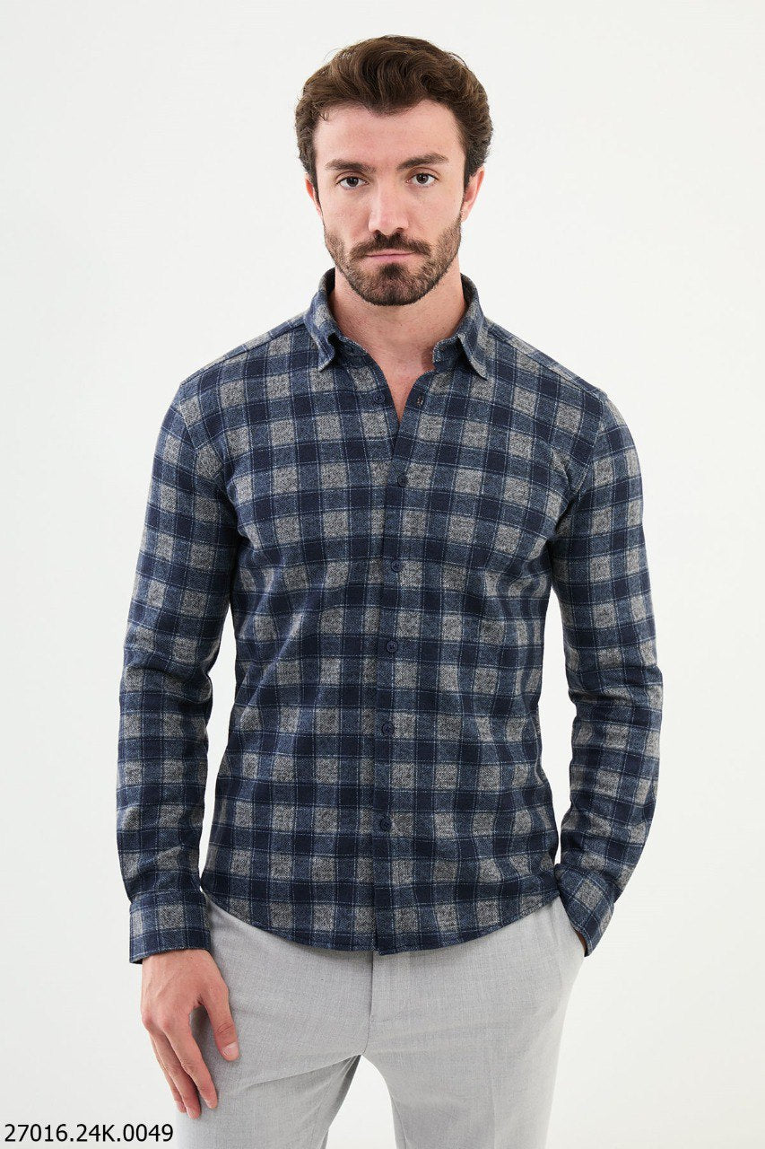 Crafted from a premium blend of 55% cotton and 45% polyester, this blue-gray plaid shirt exudes a refined yet relaxed charm. Featuring a timeless checkered pattern, this shirt is designed for both comfort and style, making it perfect for Fall-Winter wear. Ideal for layering or as a standalone piece, it pairs effortlessly with both casual and semi-formal attire. The breathable fabric ensures all-day comfort while maintaining a sharp appearance.