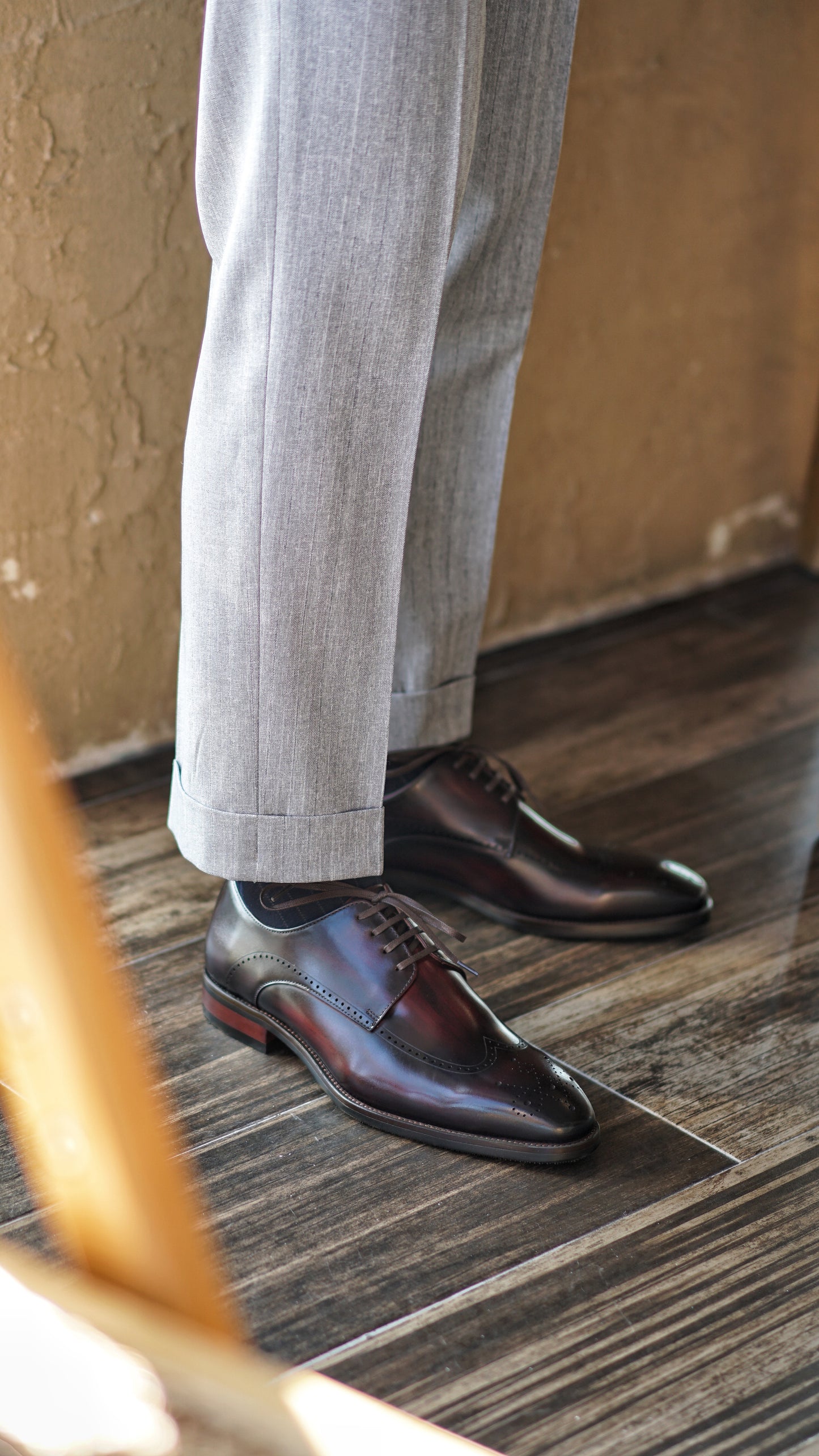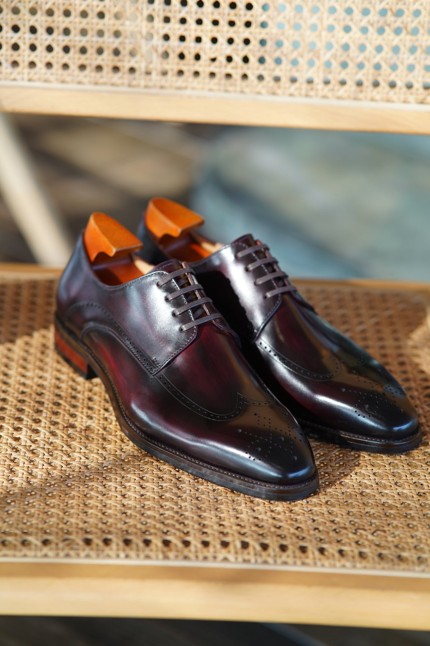 Add a dash of sophistication to your wardrobe with these Handcrafted Burgundy Wingtip Derby Shoes, designed to elevate your formal and smart-casual looks. Crafted from premium leather, these shoes feature intricate brogue detailing and a rich burgundy hue that exudes luxury. The wingtip design, combined with a polished finish, offers both style and comfort, making them perfect for any occasion that demands a refined appearance. Whether in the boardroom or at an evening event, these shoes will ensure you make a lasting impression.