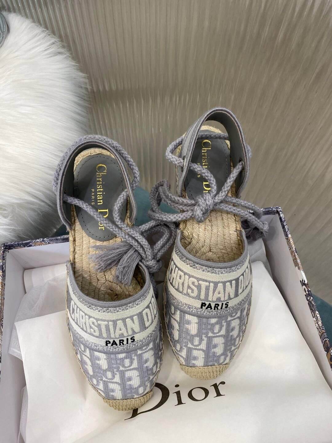 Sandalia de esparto Granville de Christian Dior, gris con estampados Dior en beige y gris