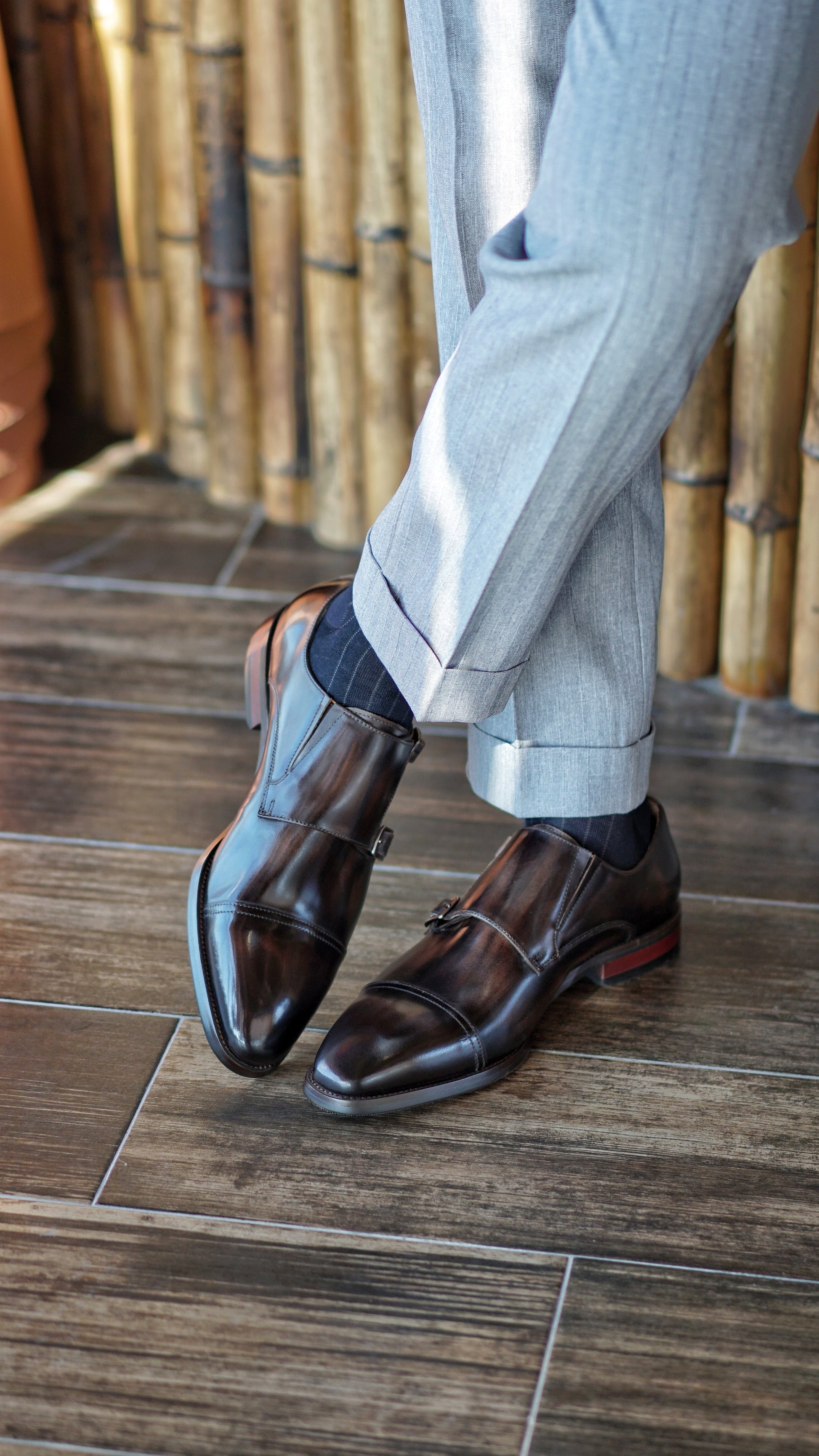 Discover the perfect blend of timeless sophistication and modern elegance with our Dark Brown Double Monk Strap Leather Shoes. Crafted from the finest full-grain leather, these shoes are designed to make a statement at every formal occasion. The dual buckle design provides a secure yet stylish fit, while the hand-burnished finish gives a sleek, luxurious appeal. The cushioned insole and leather lining ensure all-day comfort, making them perfect for weddings, business meetings, or evening galas. Step into the season with unparalleled style, comfort, and confidence.