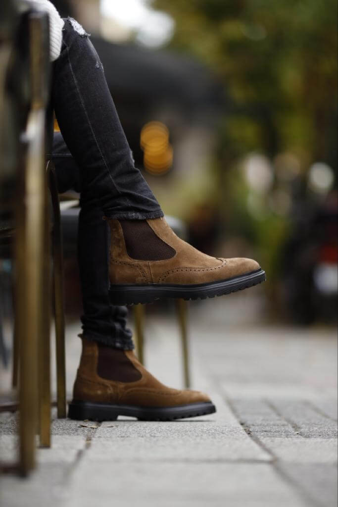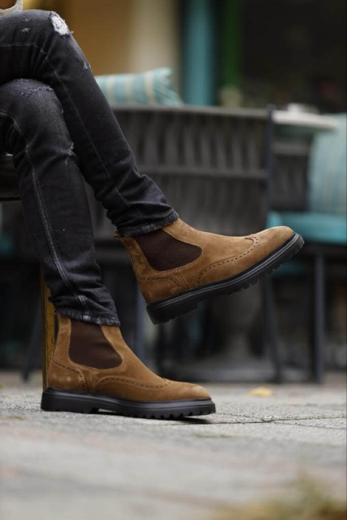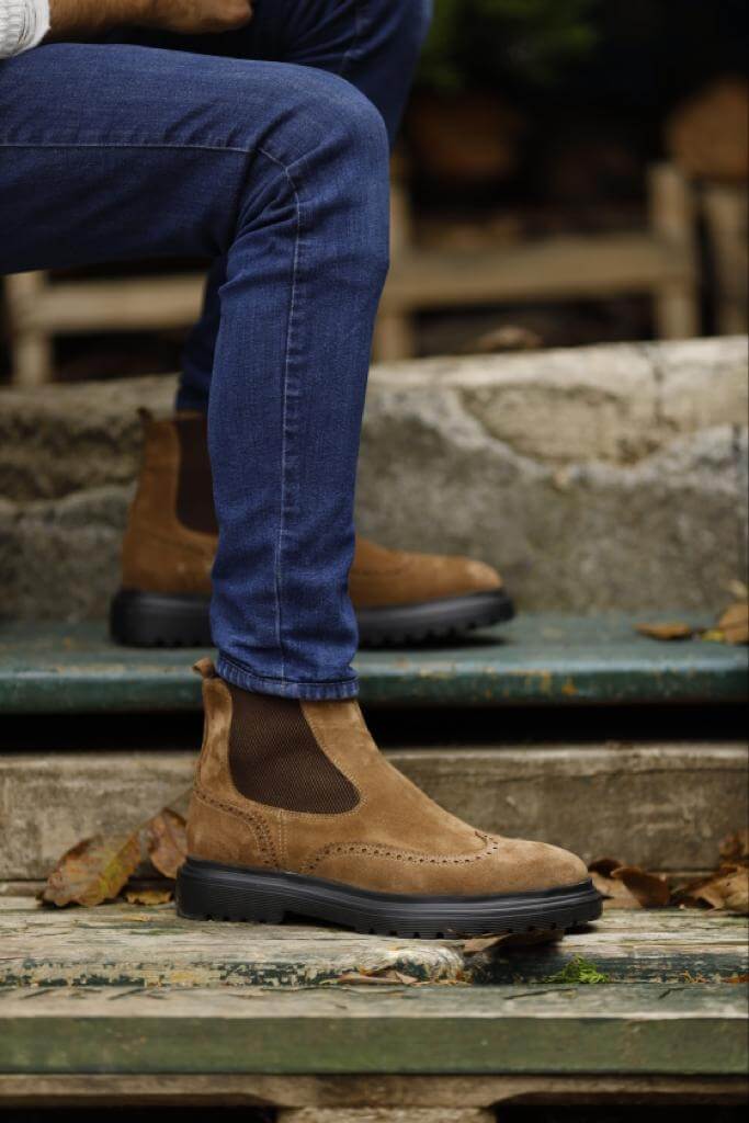 Presentamos los botines Chelsea de cuero nobuk marrón de Geneva