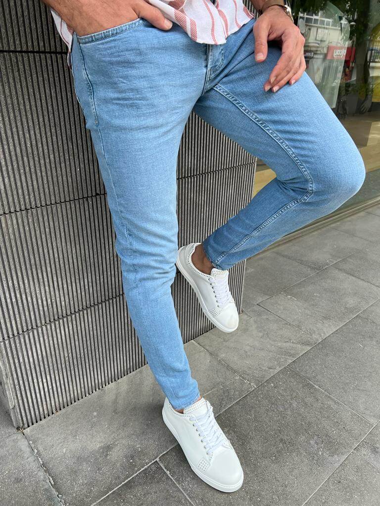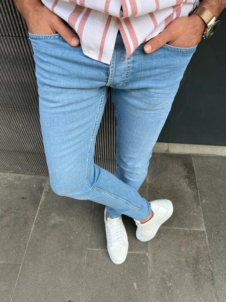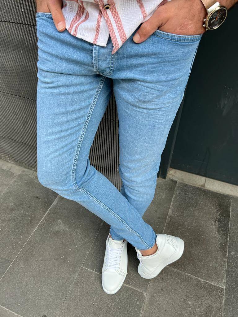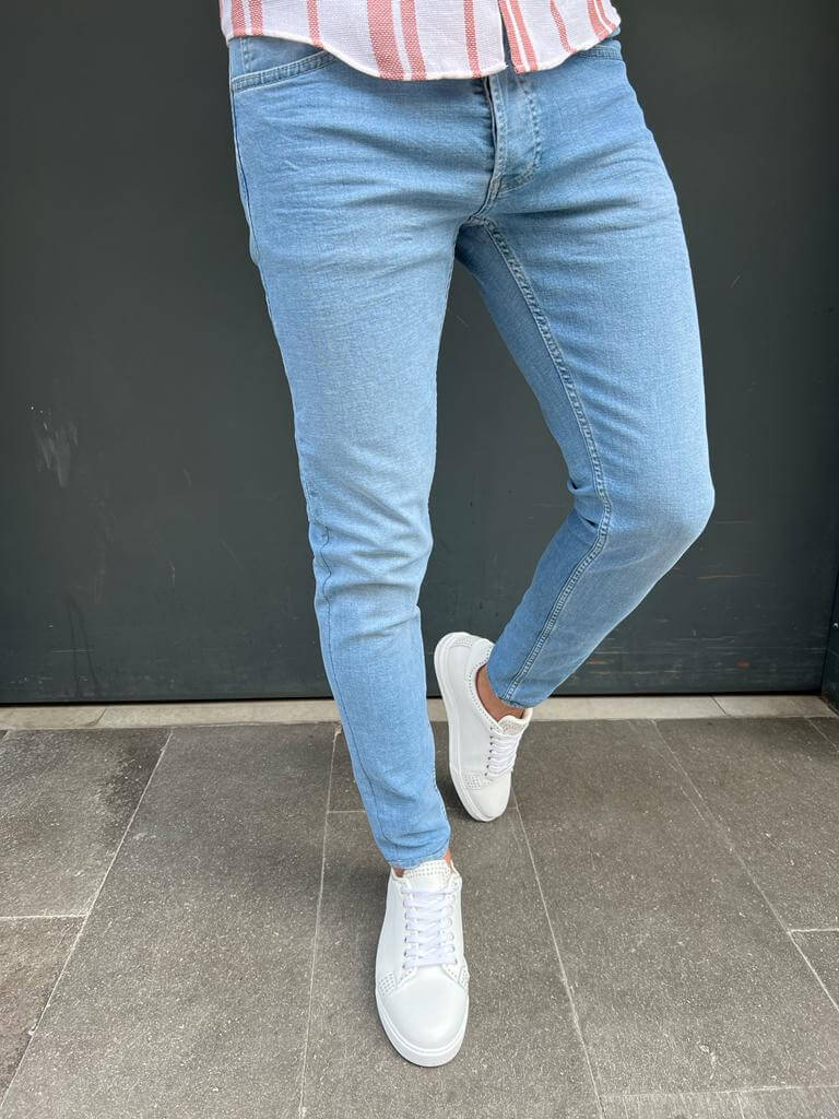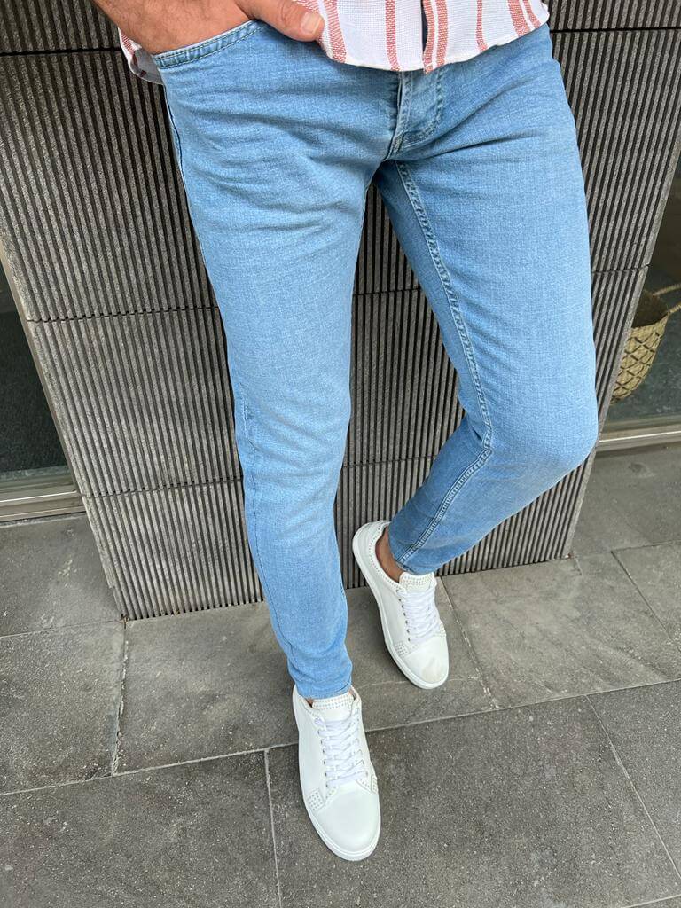 Jeans azules de lycra slim fit de alta calidad, con bolsillos laterales