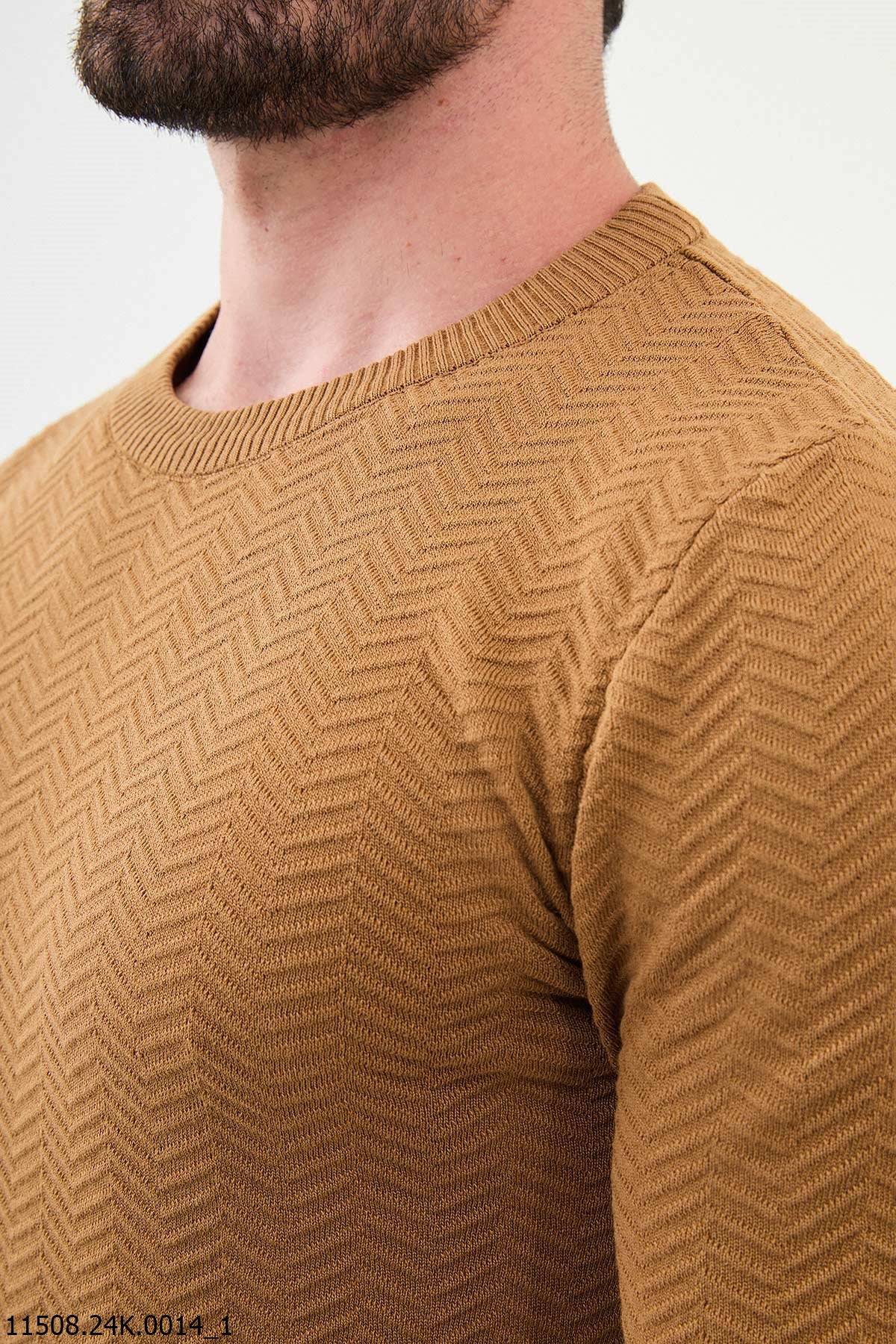 Suéter de punto texturizado color camel para hombre de HolloMen.