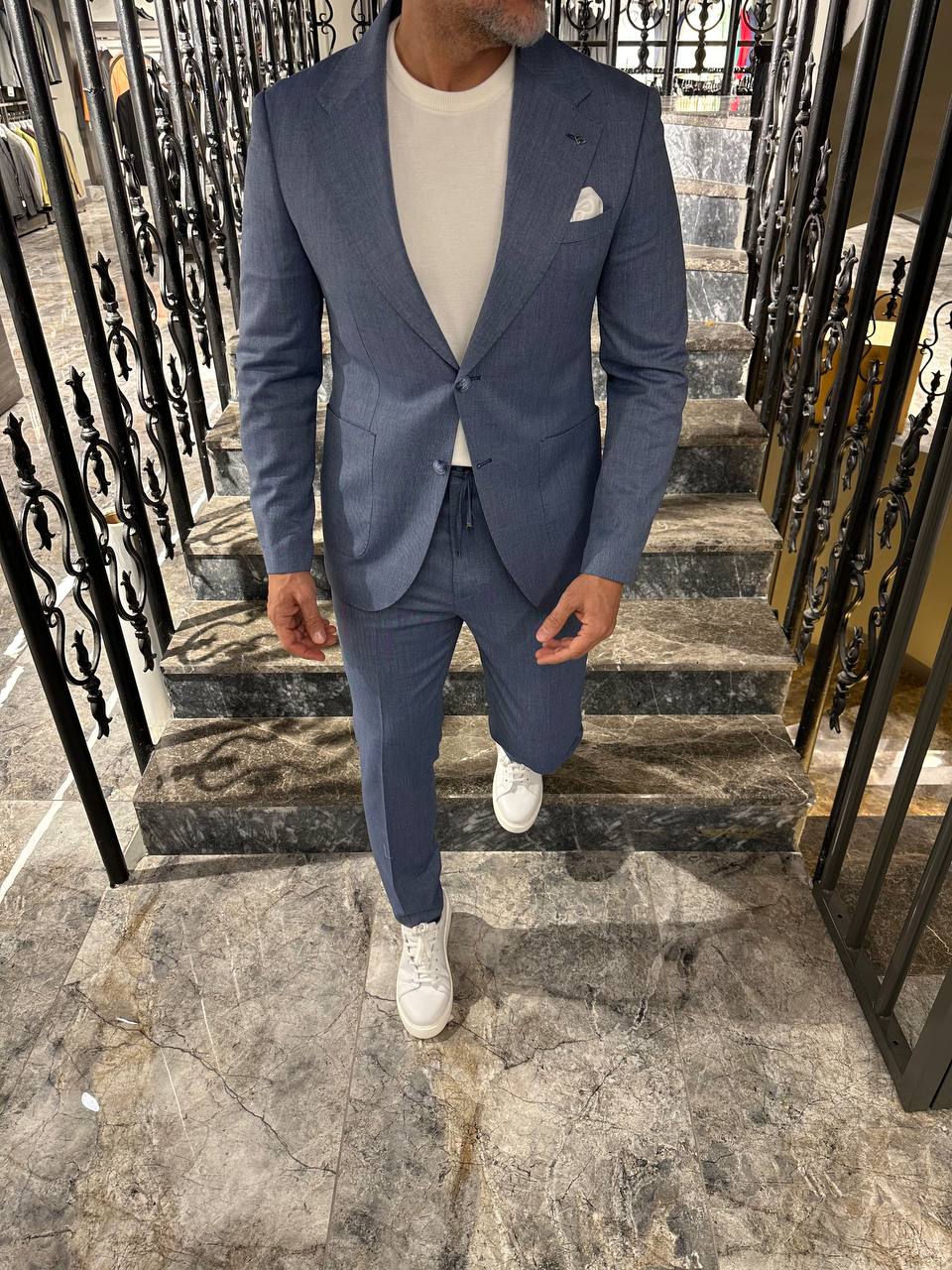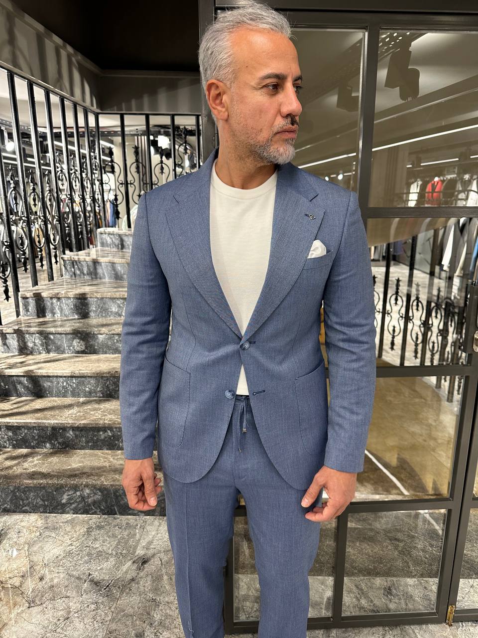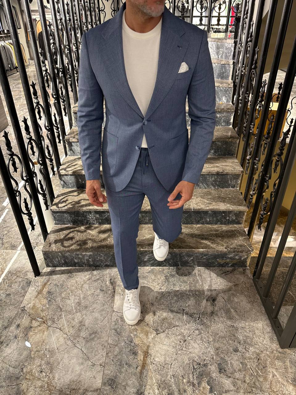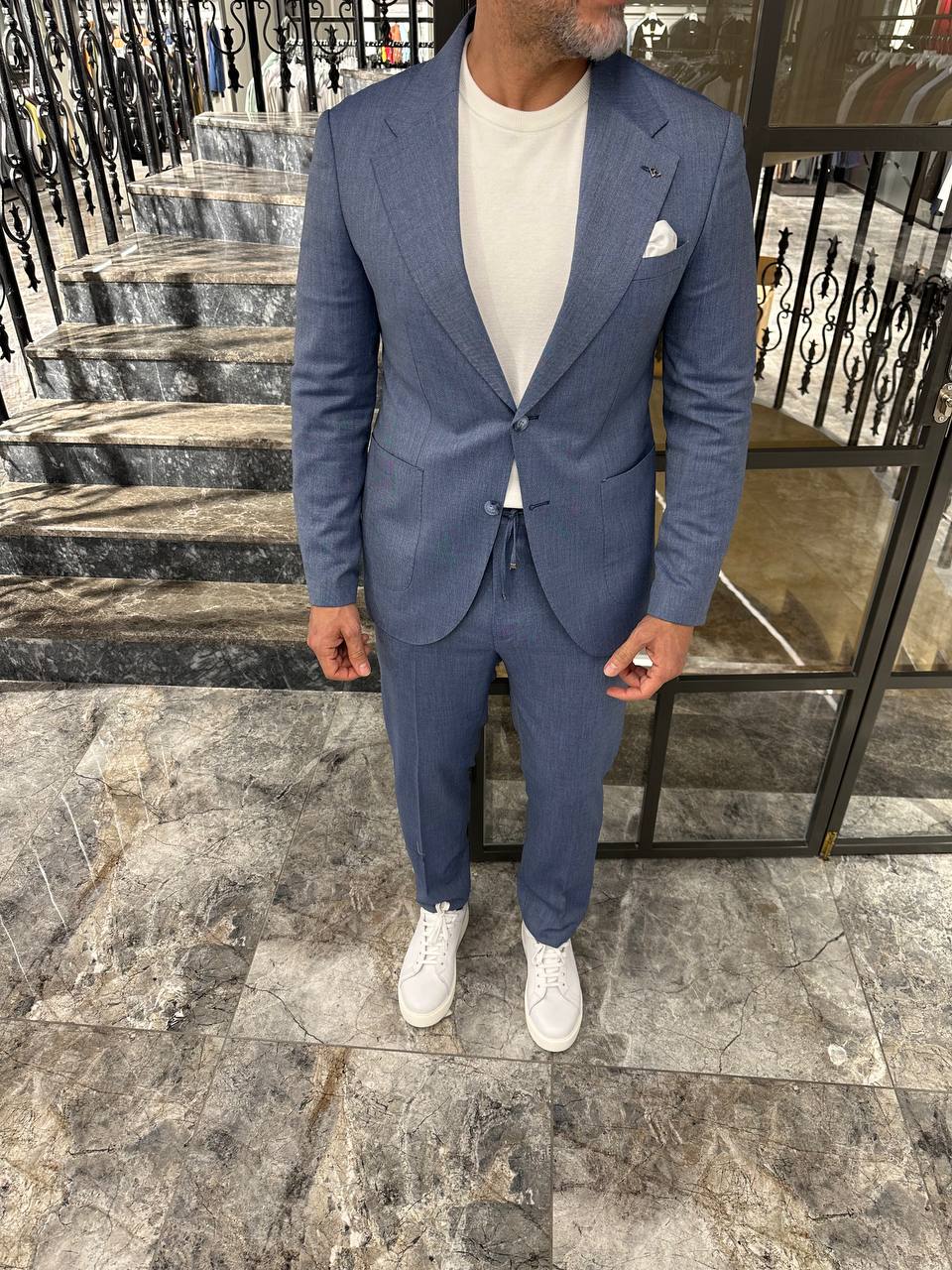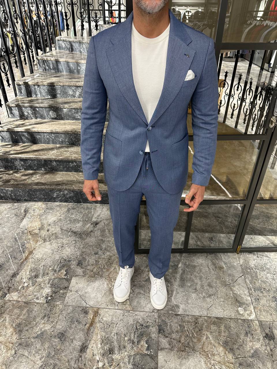 HolloMen Navy Blue Linen Suit - Summer Sophistication