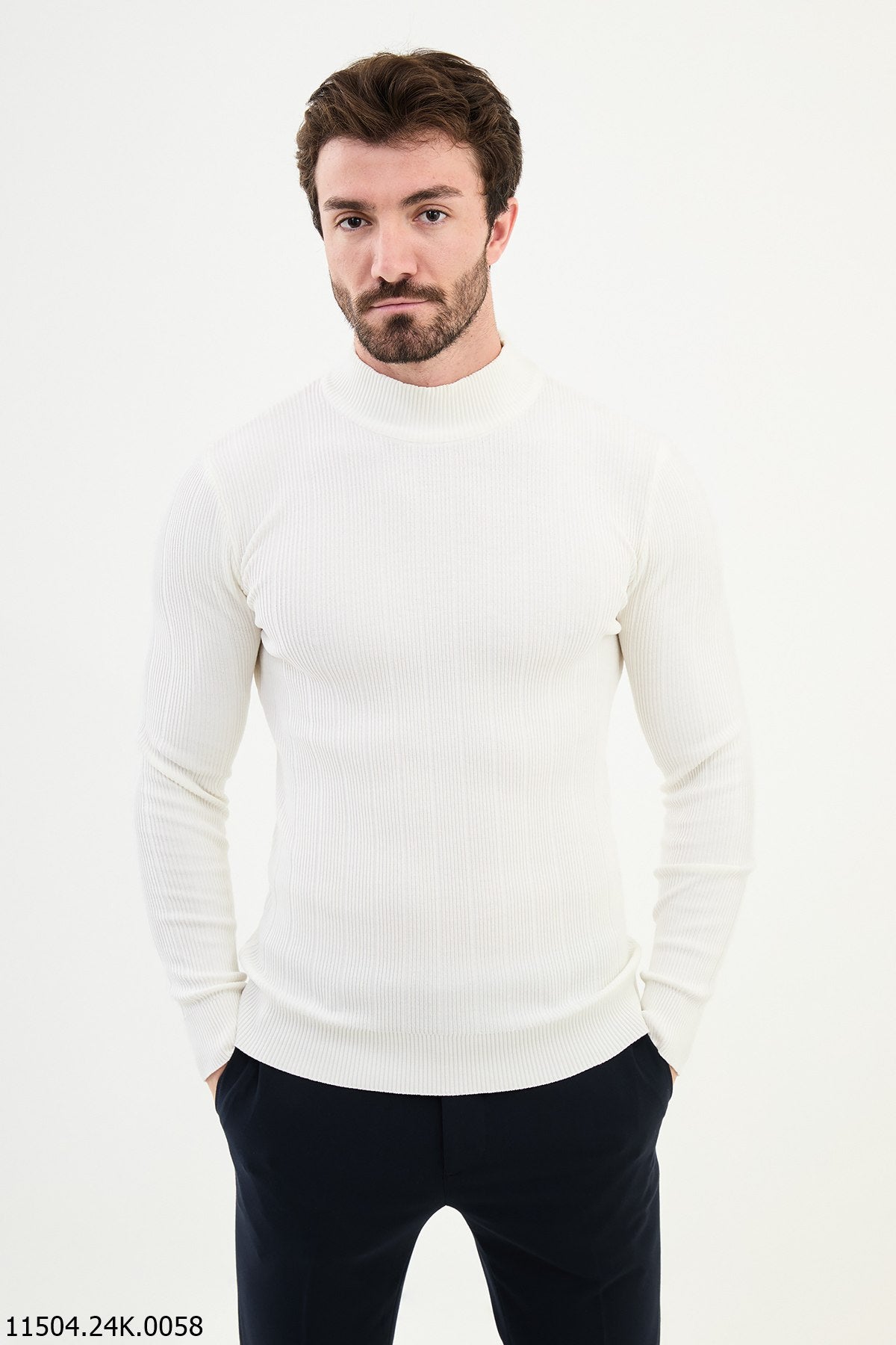 Suéter de cuello alto de punto acanalado blanco de HolloMen.