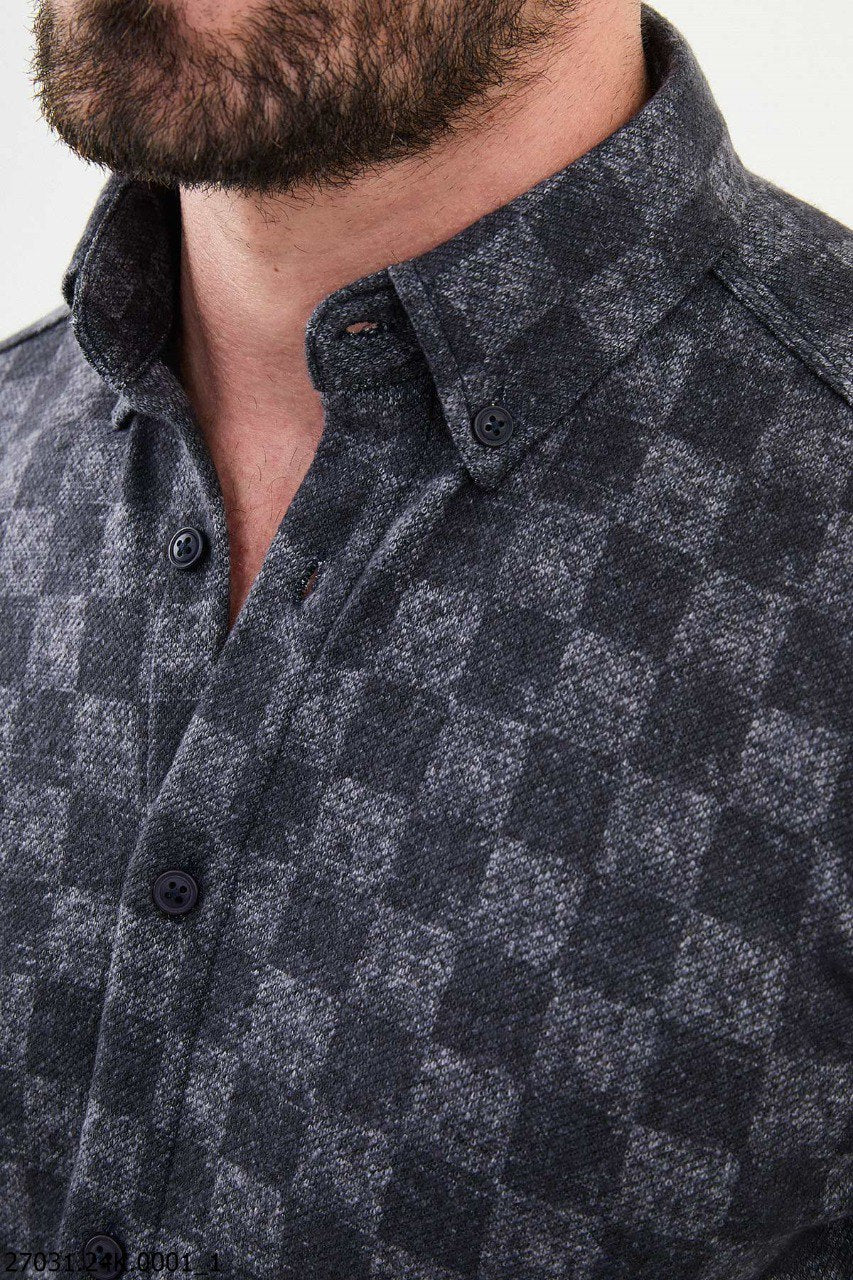 Elevate your seasonal wardrobe with this Men's Dark Gray Checkerboard Casual Shirt, designed for comfort and style. Featuring a bold checkerboard pattern in rich shades of dark gray, this shirt exudes a sophisticated yet relaxed vibe, perfect for casual outings or smart-casual events. Made with a premium blend of 55% cotton and 45% polyester, it ensures a soft feel, breathable wear, and durability for the Fall-Winter season. This versatile piece is tailored with a button-down collar and subtle stitching details, providing a refined touch to your outfit.