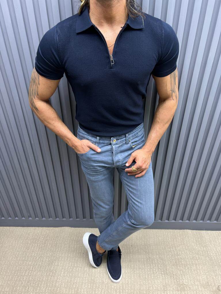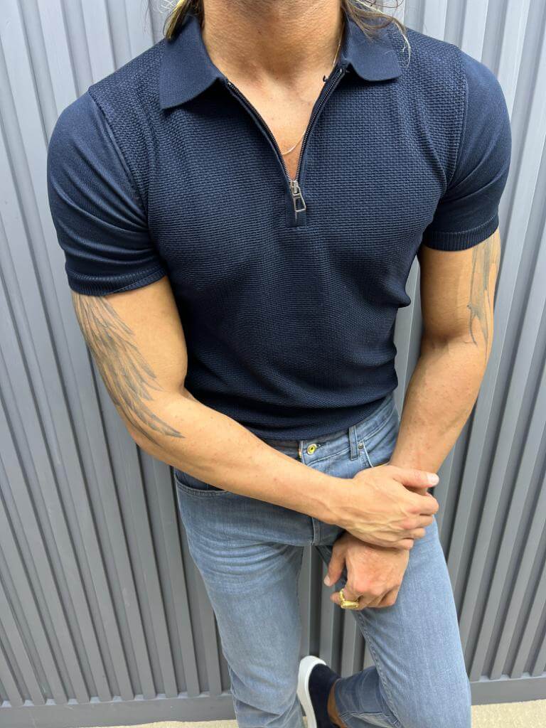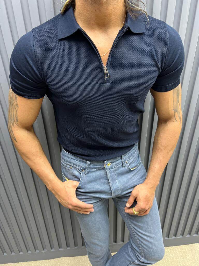 The Navy Blue Polo T-Shirt epitomizes impeccable style and refined elegance. Crafted with meticulous attention to detail, this wardrobe essential combines sophistication with a touch of versatility. Whether dressed with tailored trousers or jeans for a more relaxed vibe, the Navy Blue Polo T-Shirt ensures you look effortlessly put together and exude an air of sophistication.