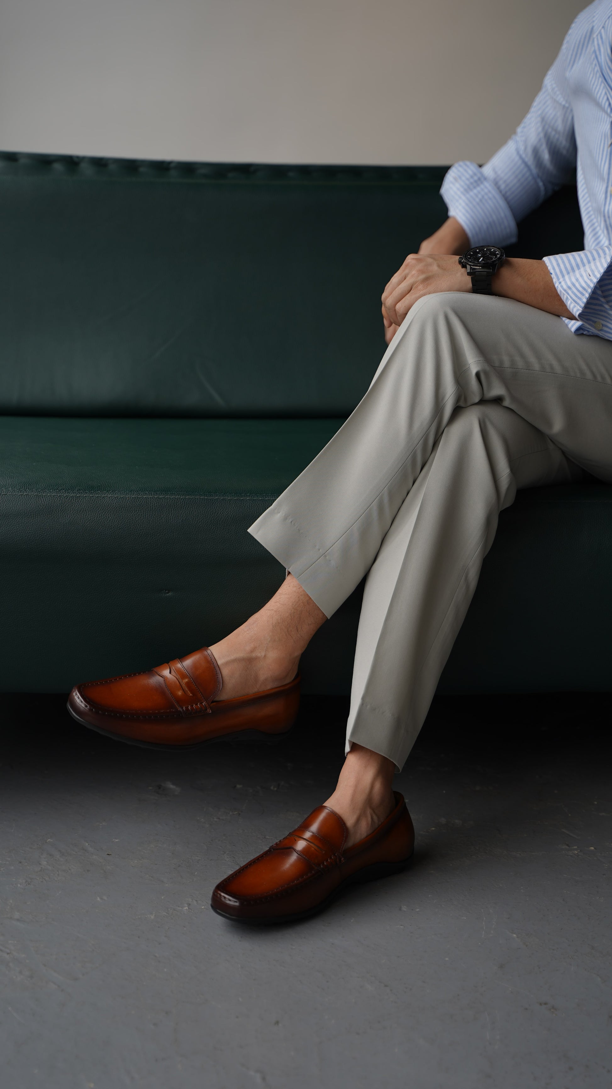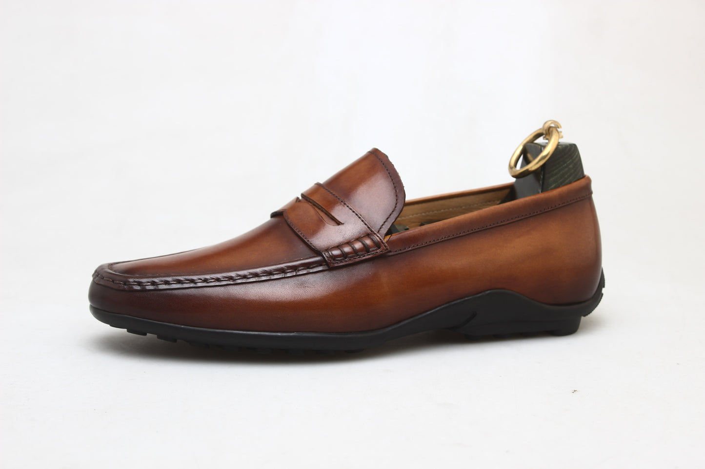 Mejora tu estilo diario con estos mocasines marrones atemporales, confeccionados en piel de becerro de primera calidad para una sensación de lujo y una durabilidad duradera. El forro de piel de cerdo flexible garantiza transpirabilidad y comodidad, mientras que la suela de goma negra en contraste añade un toque moderno y proporciona una excelente tracción. El diseño clásico de mocasín hace que estos zapatos sean lo suficientemente versátiles para usar con vestimenta elegante o informal, perfectos para cualquier ocasión.