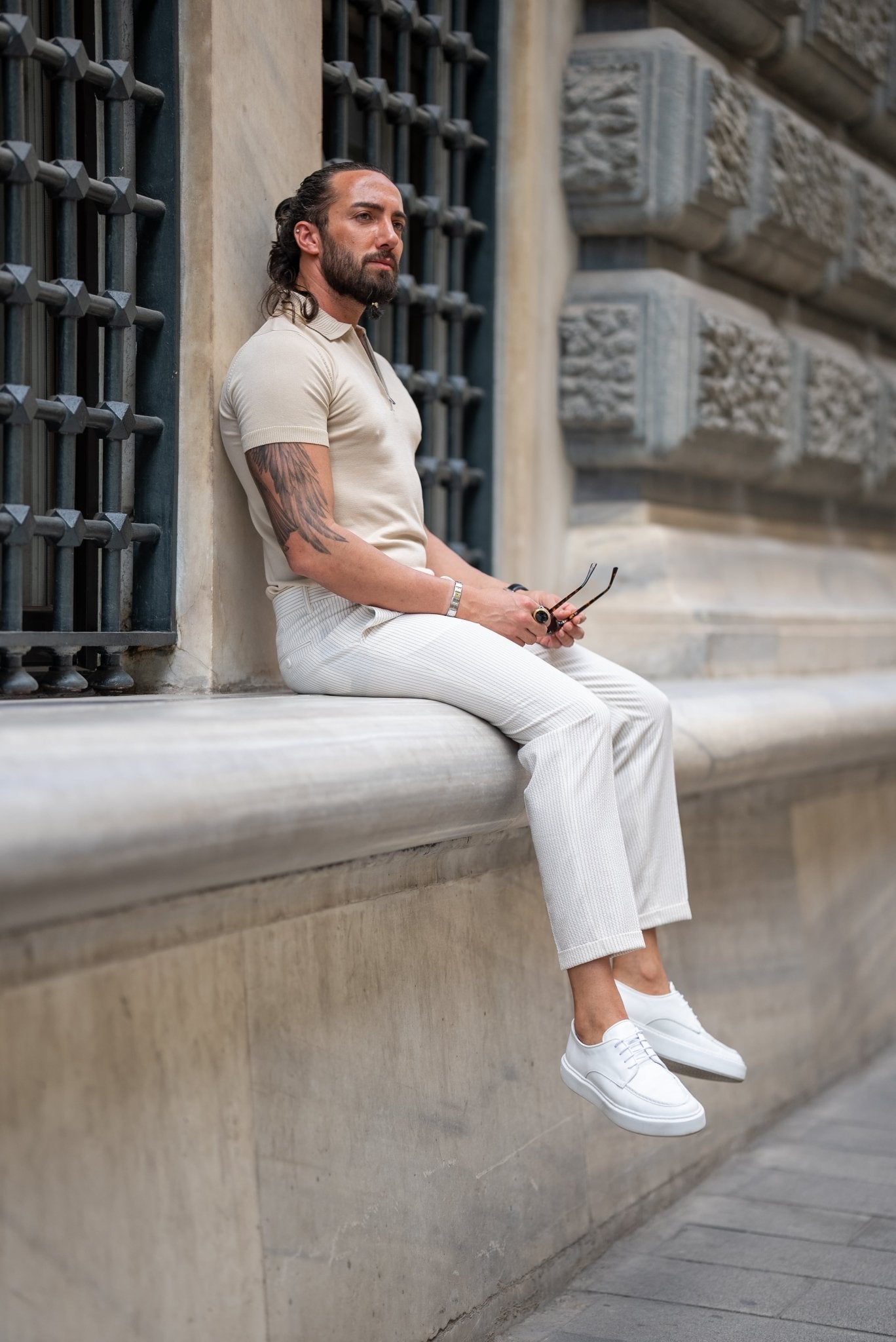 We're Featuring a Special Design, a Beige Zıpper Collar Knitwear T-shirt.
