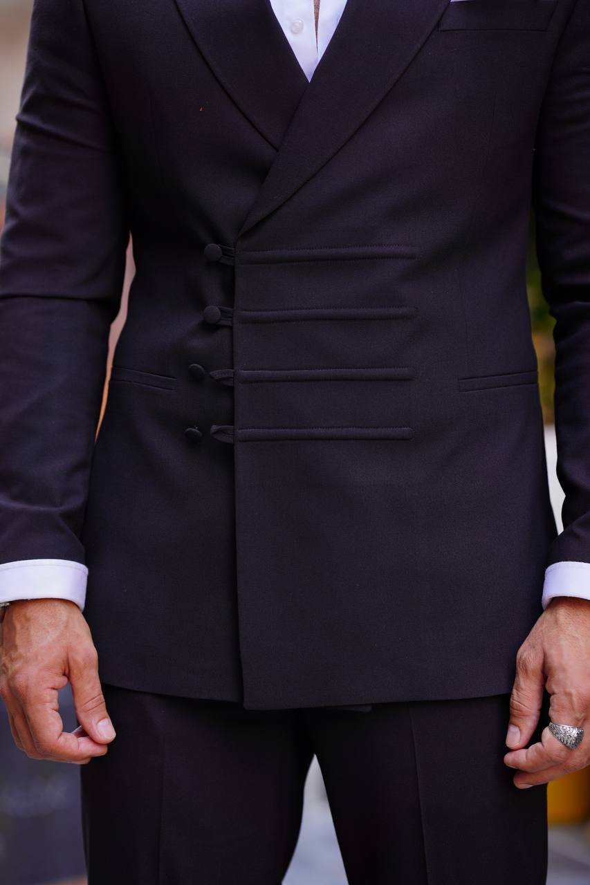 Immerse yourself in the allure of sophisticated style with the Nocturne Noir Suit. This deep black ensemble is crafted for the gentleman who appreciates classic elegance and modern design.