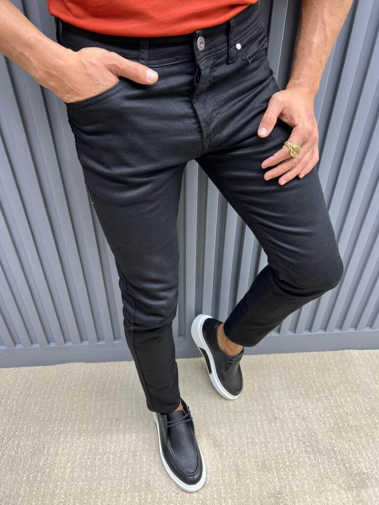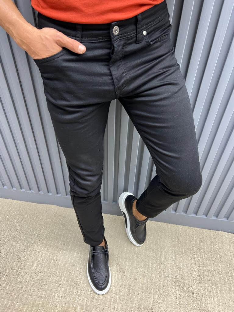 Nous sommes en vedette de haute qualité noir Slim Fit Jeans avec poches latérales.