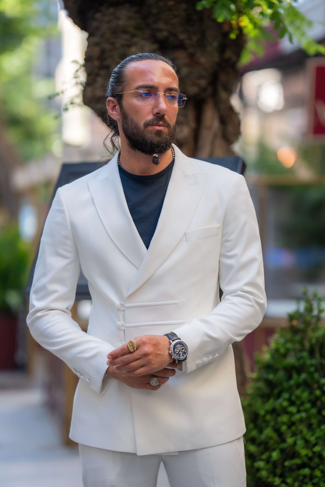 To preserve the premium quality of your slim-fit Ecru suit, dry clean only.