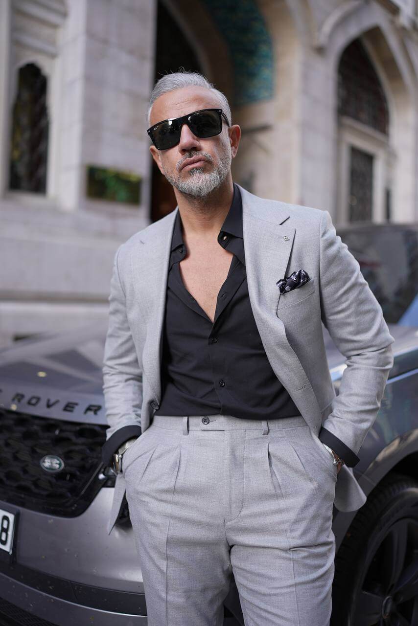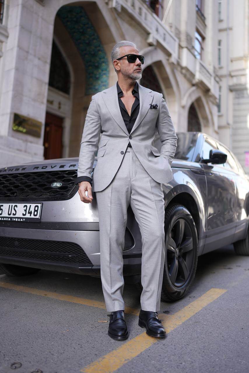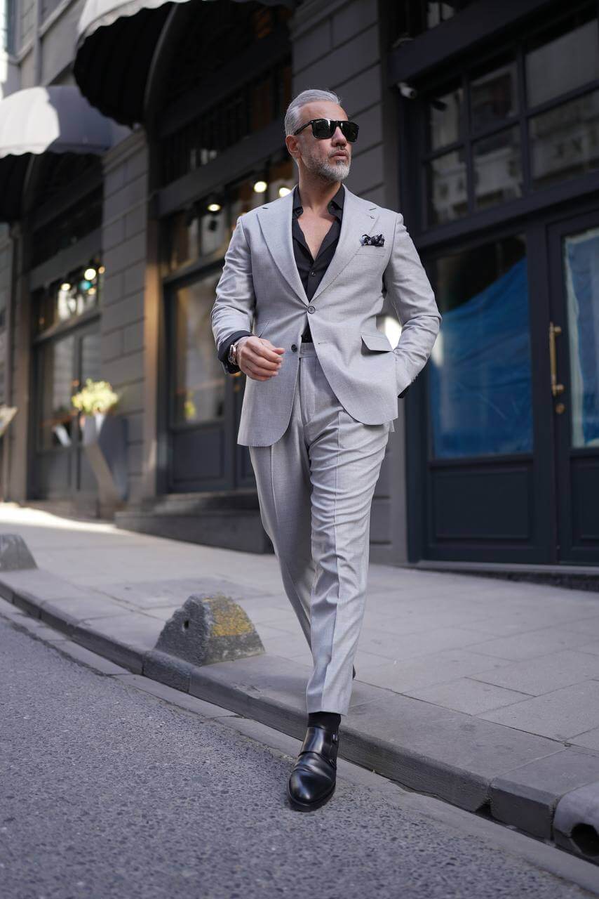 Ideal for business meetings and formal events, the suit’s sleek design and comfortable fit ensure you look sharp and confident. Paired with a contrasting black shirt and polished accessories, this suit is your go-to choice for making a lasting impression.