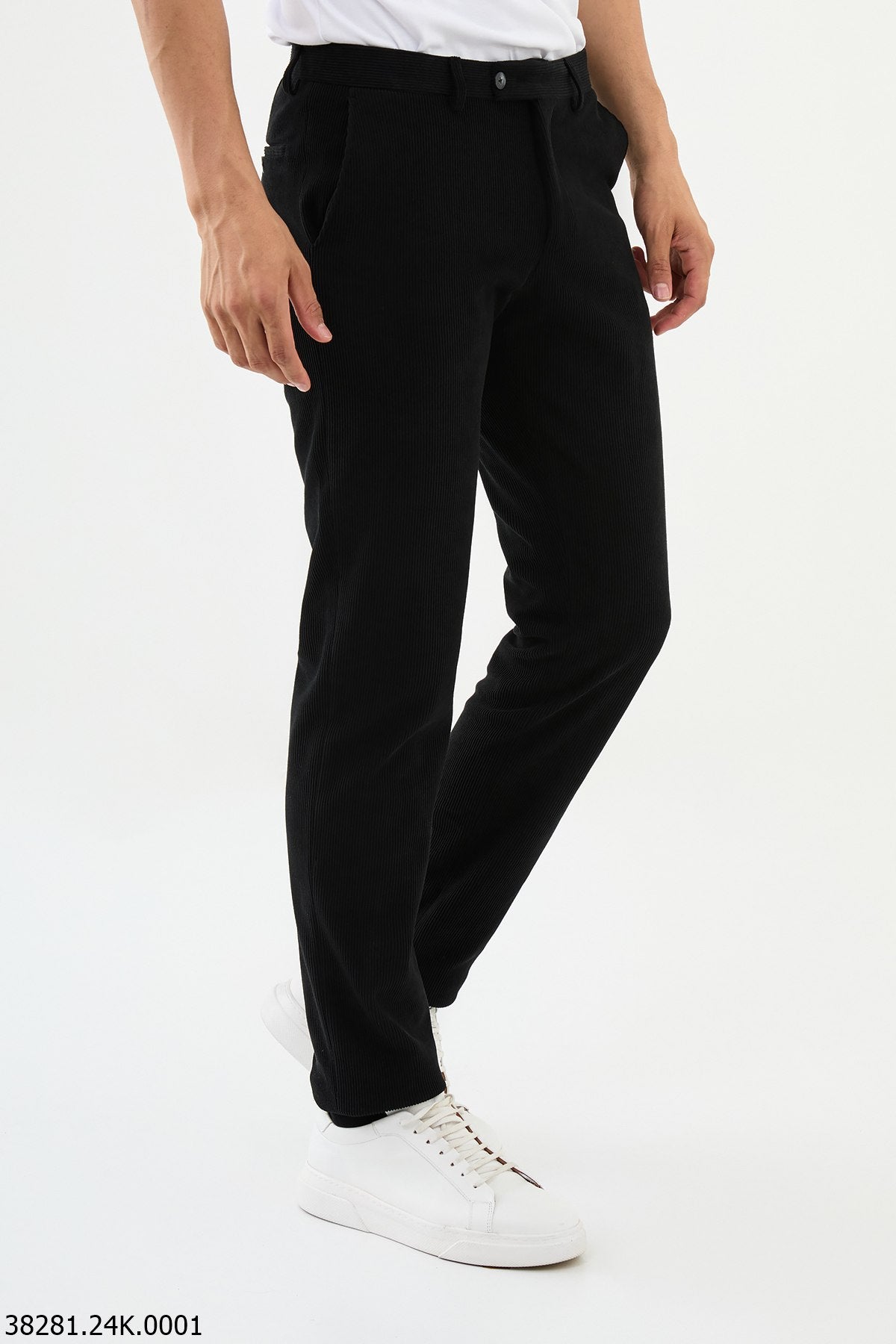 Pantalon habillé slim en velours côtelé noir HolloMen.