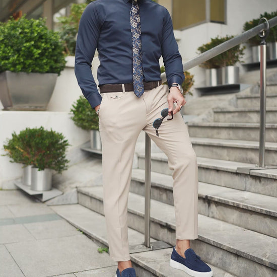 We're Featuring Slim Fit Navy Blue Cotton Shirt