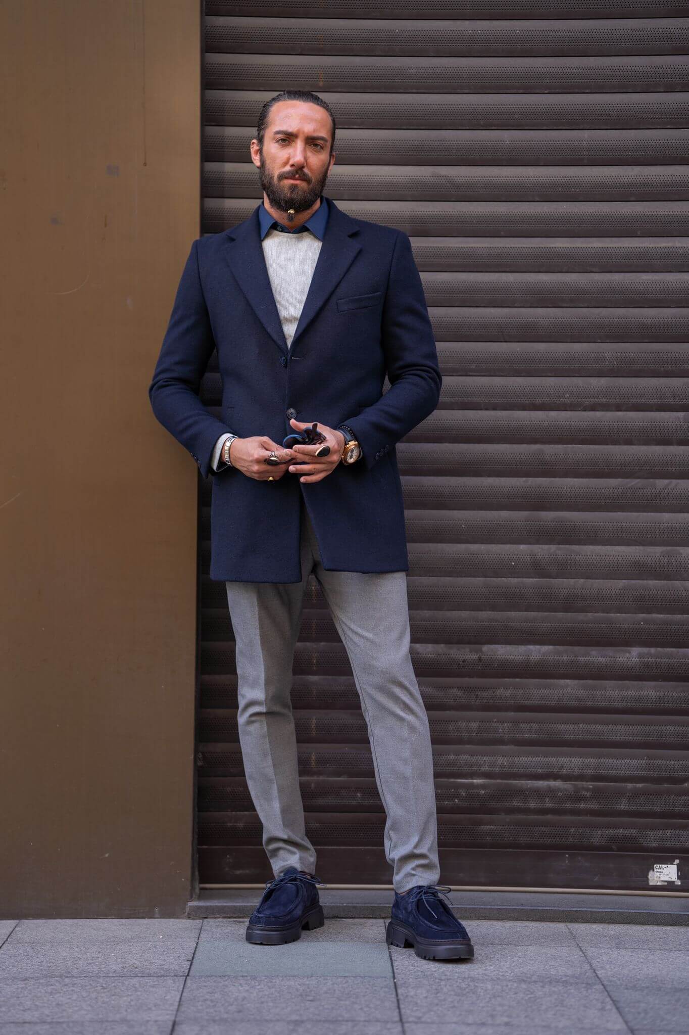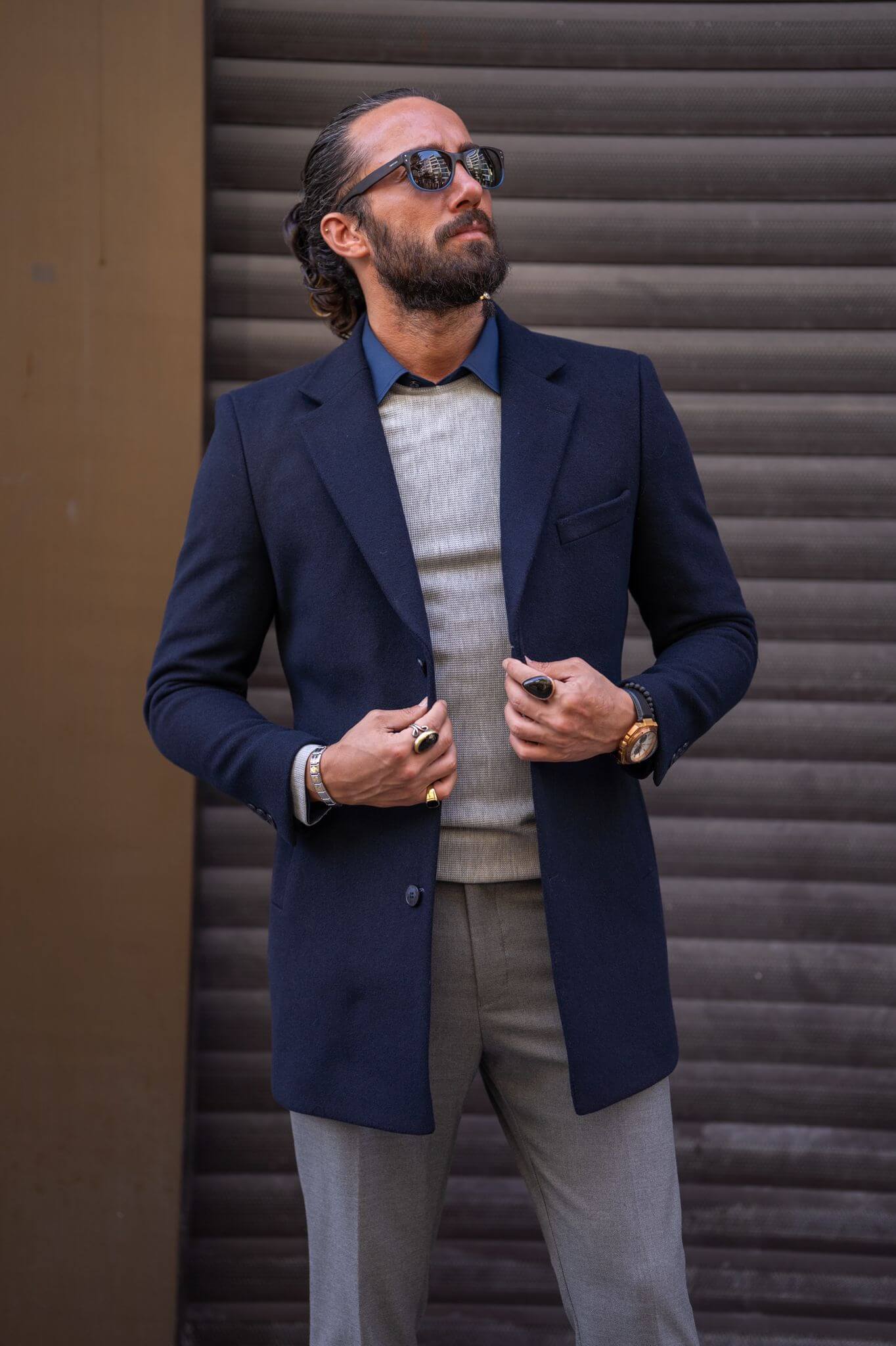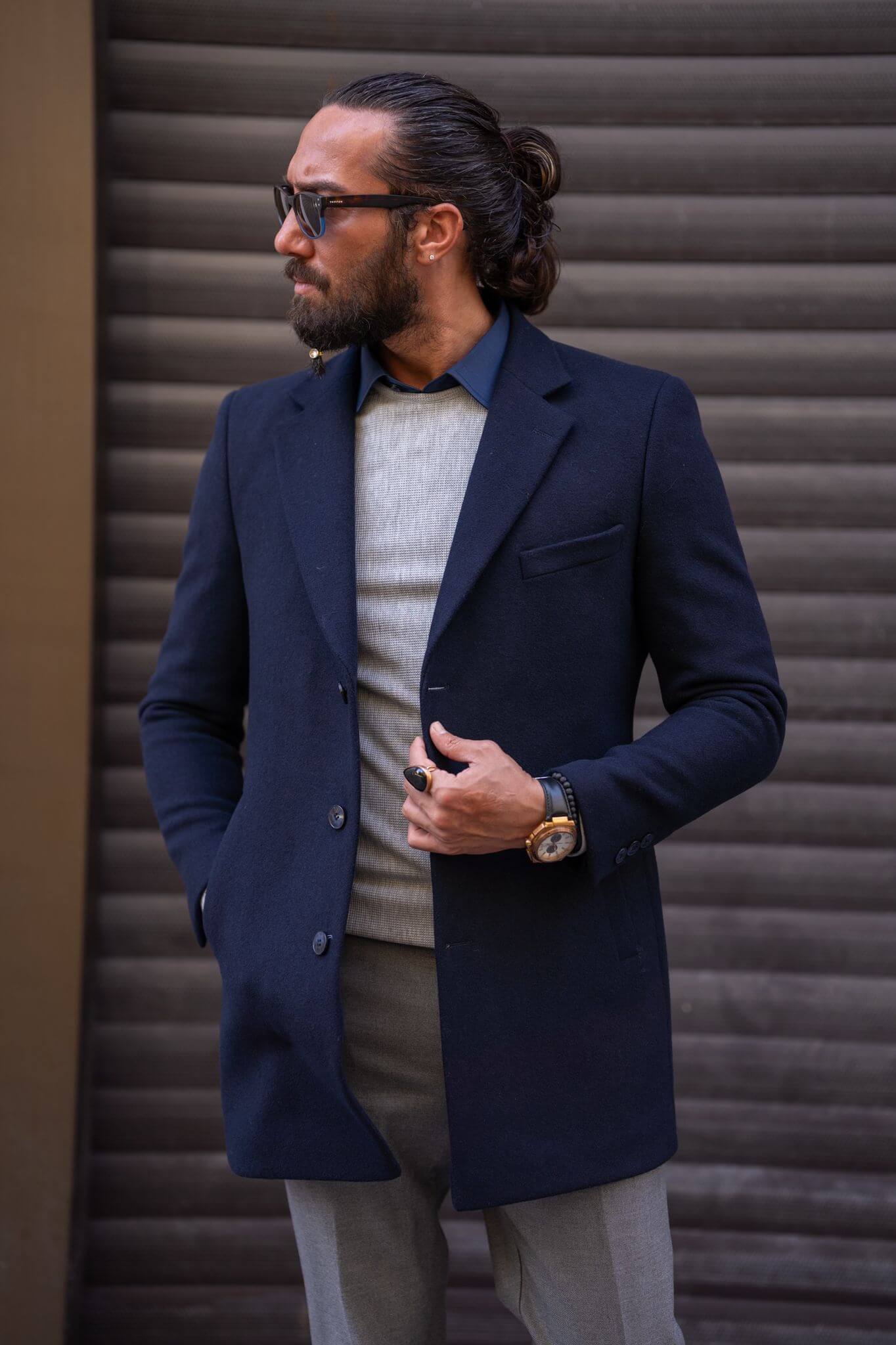 Découvrez notre manteau en cachemire bleu marine coupe slim, une pièce exclusive de la collection automne-hiver HolloMen. Confectionné dans un mélange de 55 % coton et 45 % polyester, ce manteau à la coupe impeccable allie sophistication classique et style moderne.