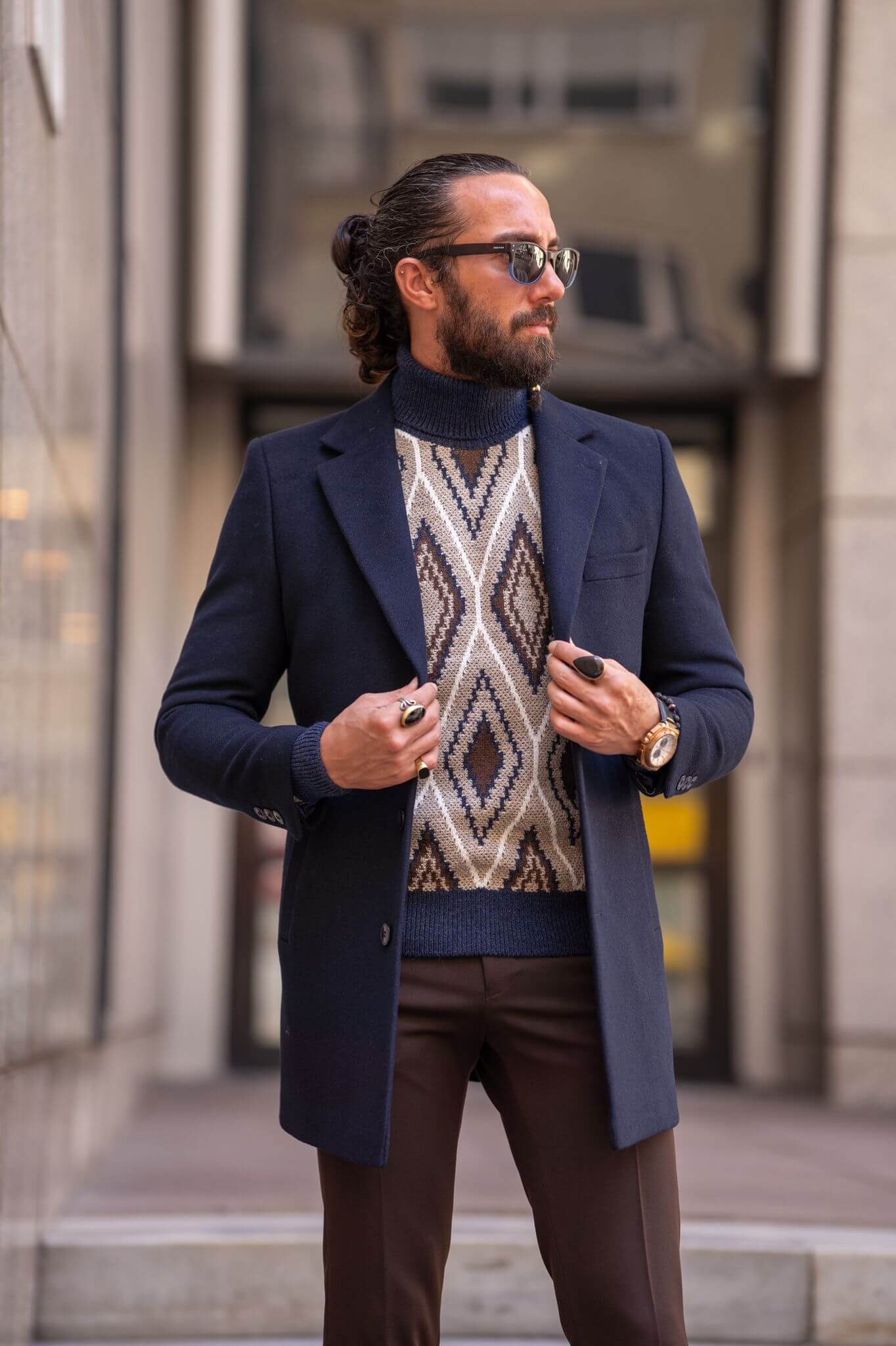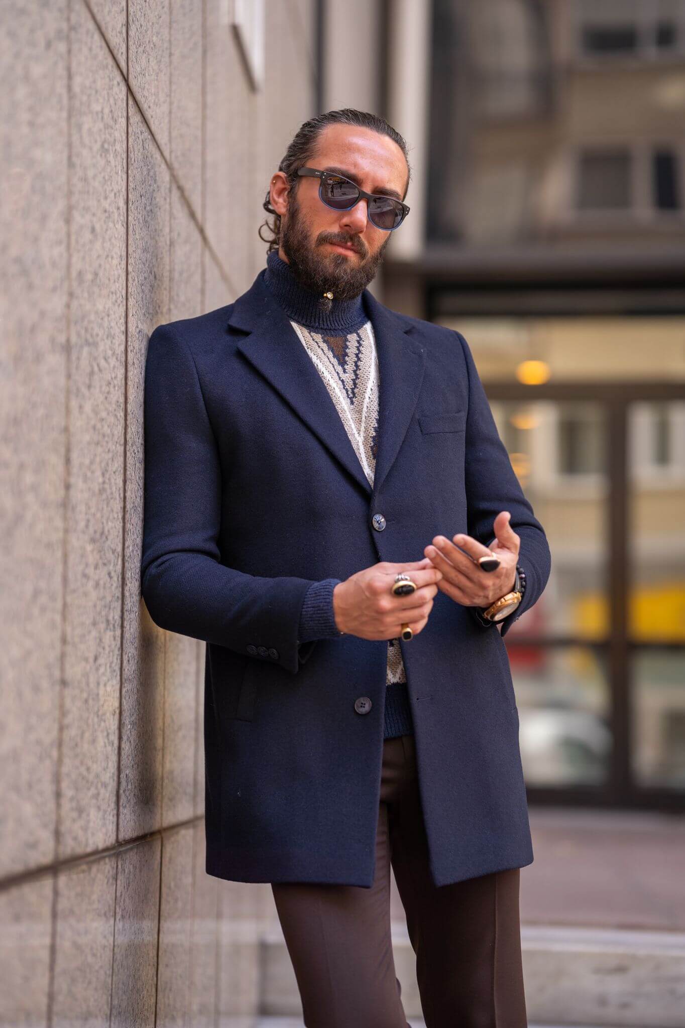 Découvrez notre manteau bleu marine en cachemire coupe slim, une exclusivité de la collection automne-hiver HolloMen. Confectionné dans un mélange haut de gamme de 55 % coton et 45 % polyester, cet élégant manteau bleu marine allie un design raffiné à un confort optimal.