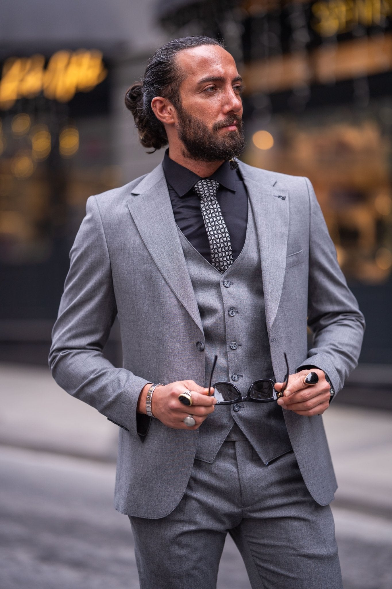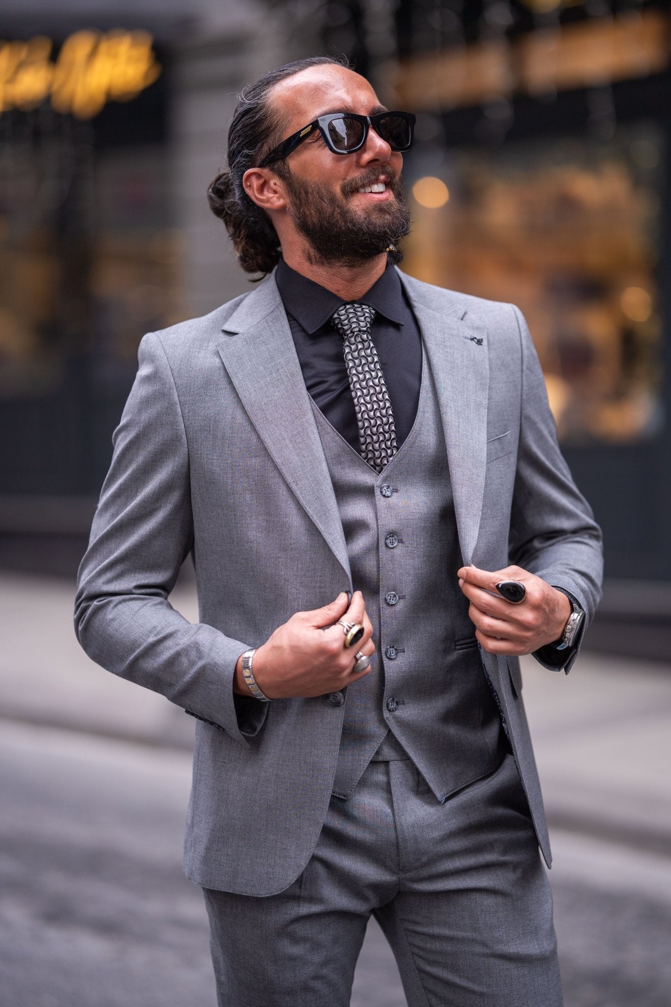 Attirez l'attention et respirez la confiance avec notre costume de mariage gris 3 pièces coupe slim, un summum de sophistication moderne. Avec sa silhouette ajustée et son charme intemporel, cet ensemble allie style et élégance pour un look qui en dit long.