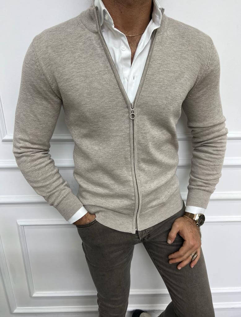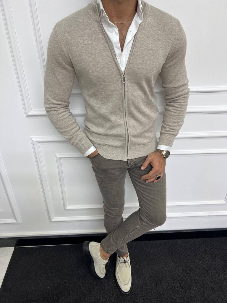 Nous vous présentons notre cardigan beige à col en V, la pièce de superposition parfaite pour votre garde-robe. Ce cardigan est conçu avec une fermeture à glissière, ce qui le rend facile à mettre et à enlever. L'encolure en V ajoute une touche d'élégance au design et la couleur beige neutre est facile à assortir à n'importe quelle tenue. Le tissu de ce cardigan est composé d'un mélange de coton et d'acrylique doux et confortable, ce qui le rend parfait pour les journées plus fraîches. Avec son design polyvalent, ce cardigan peut être habillé ou décontracté selon l'occasion. Ajoutez une touche de classe à votre garde-robe avec notre gilet col V beige.