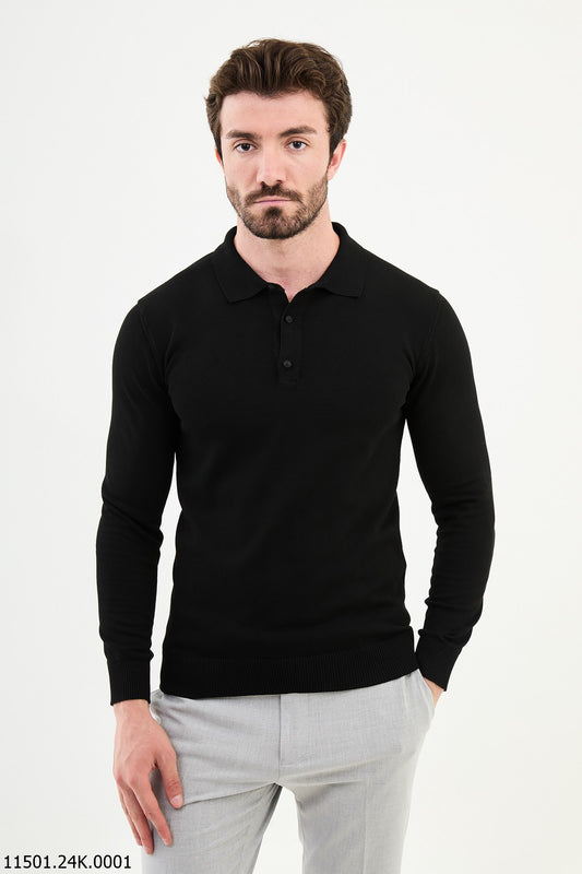 AXIST Black Textured Quarter-Zip Slim Fit Sweater.