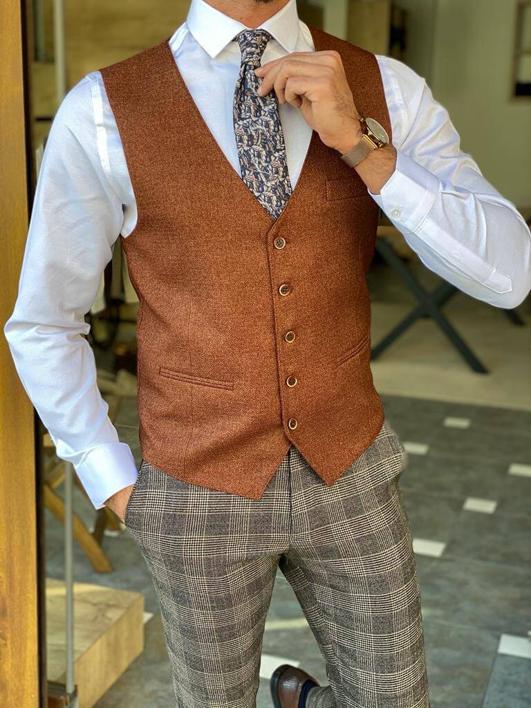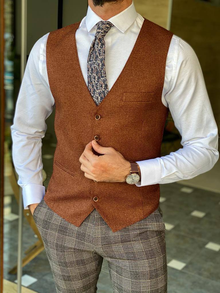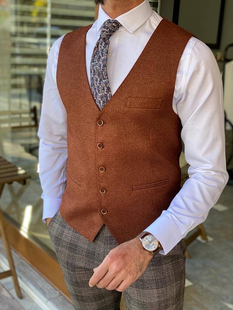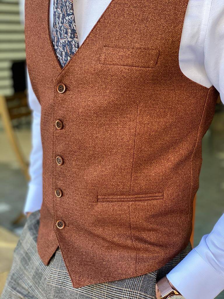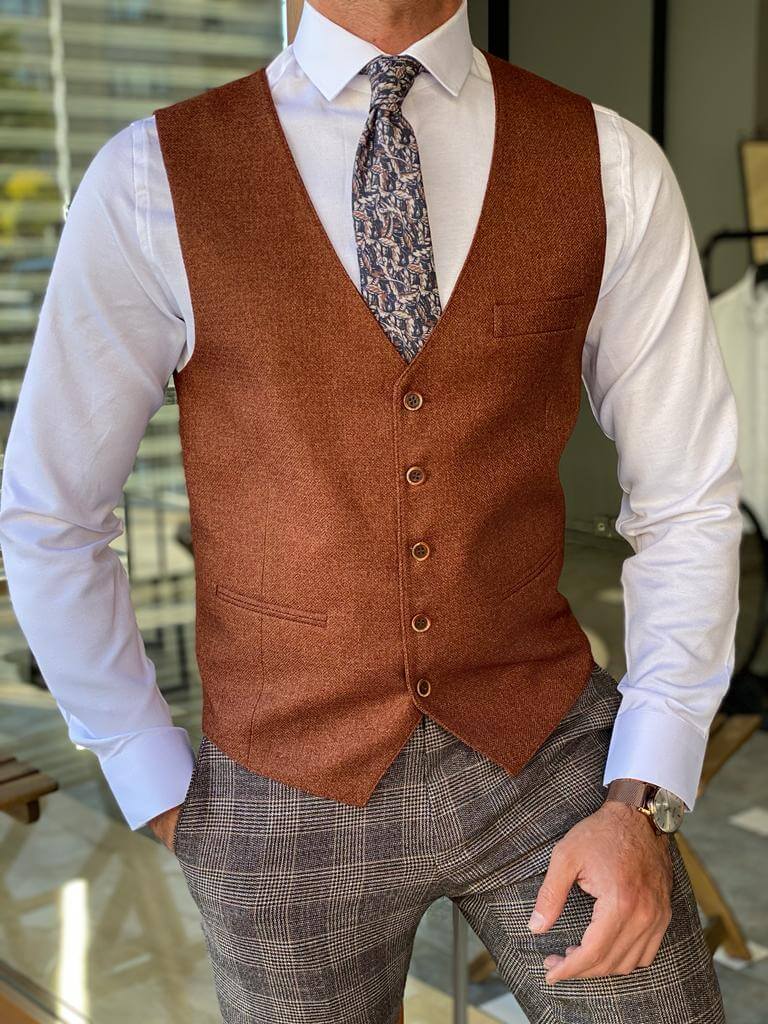 Il tessuto del gilet è composto da 20% lana, 30% poliestere, 40% viscosa, 5% elastan.