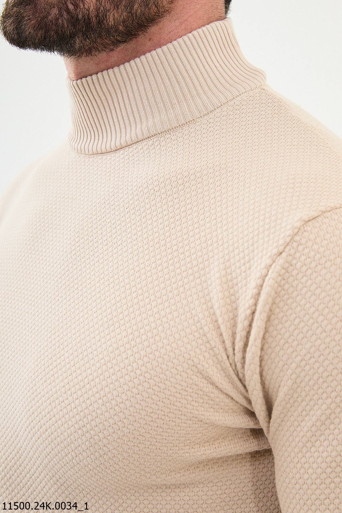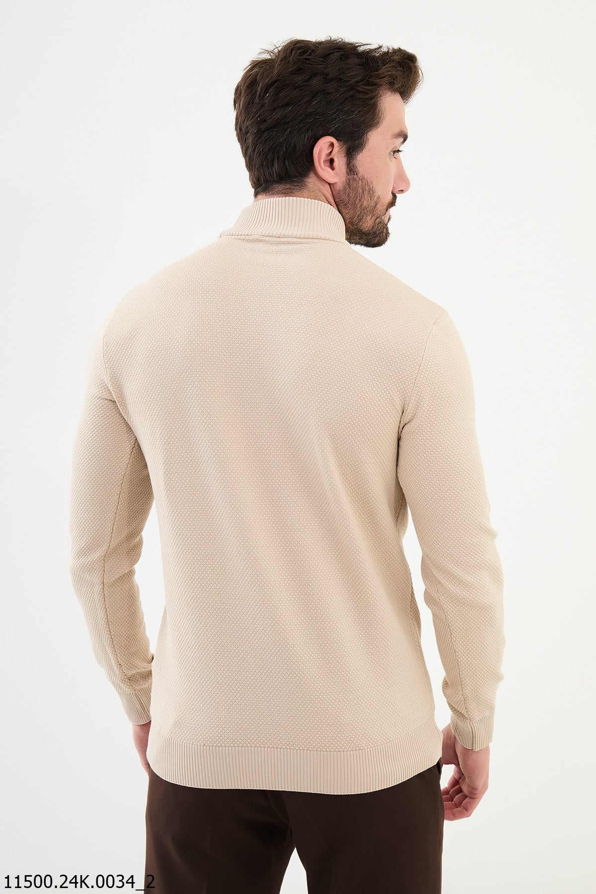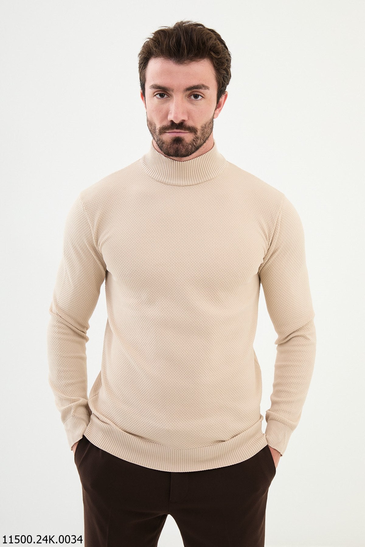 Redefine minimal elegance with the HolloMen Beige Textured Turtleneck Sweater, a timeless addition to any modern wardrobe. Crafted from 55% cotton and 45% polyester, this sweater offers a soft, breathable feel with long-lasting durability. The neutral beige tone pairs effortlessly with both dark and light trousers, making it a versatile piece for any occasion. The textured pattern adds depth to the design, while the ribbed turtleneck ensures a snug, comfortable fit. Perfect for layering under coats or wearing solo for a refined, understated look.
