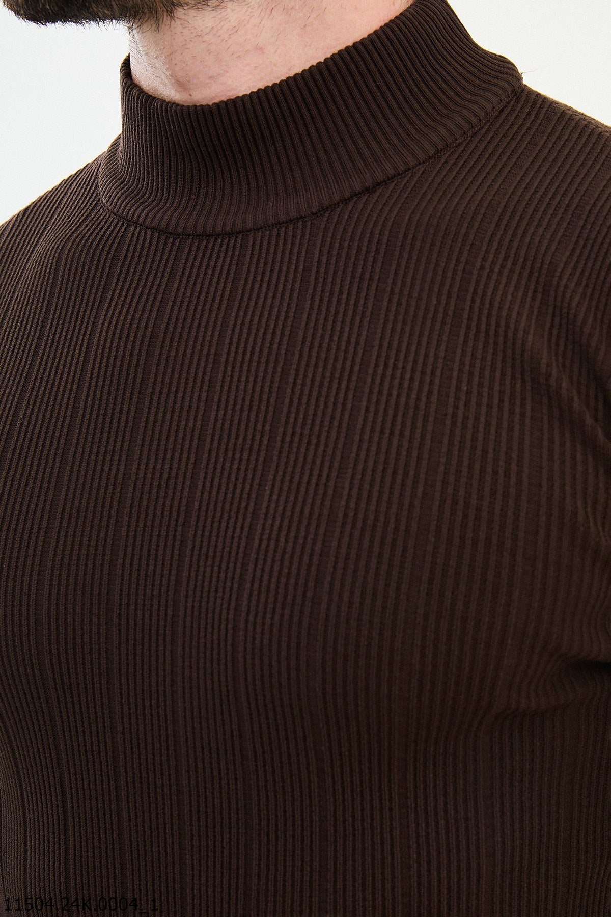 HolloMen Brown Ribbed Turtleneck Sweater.