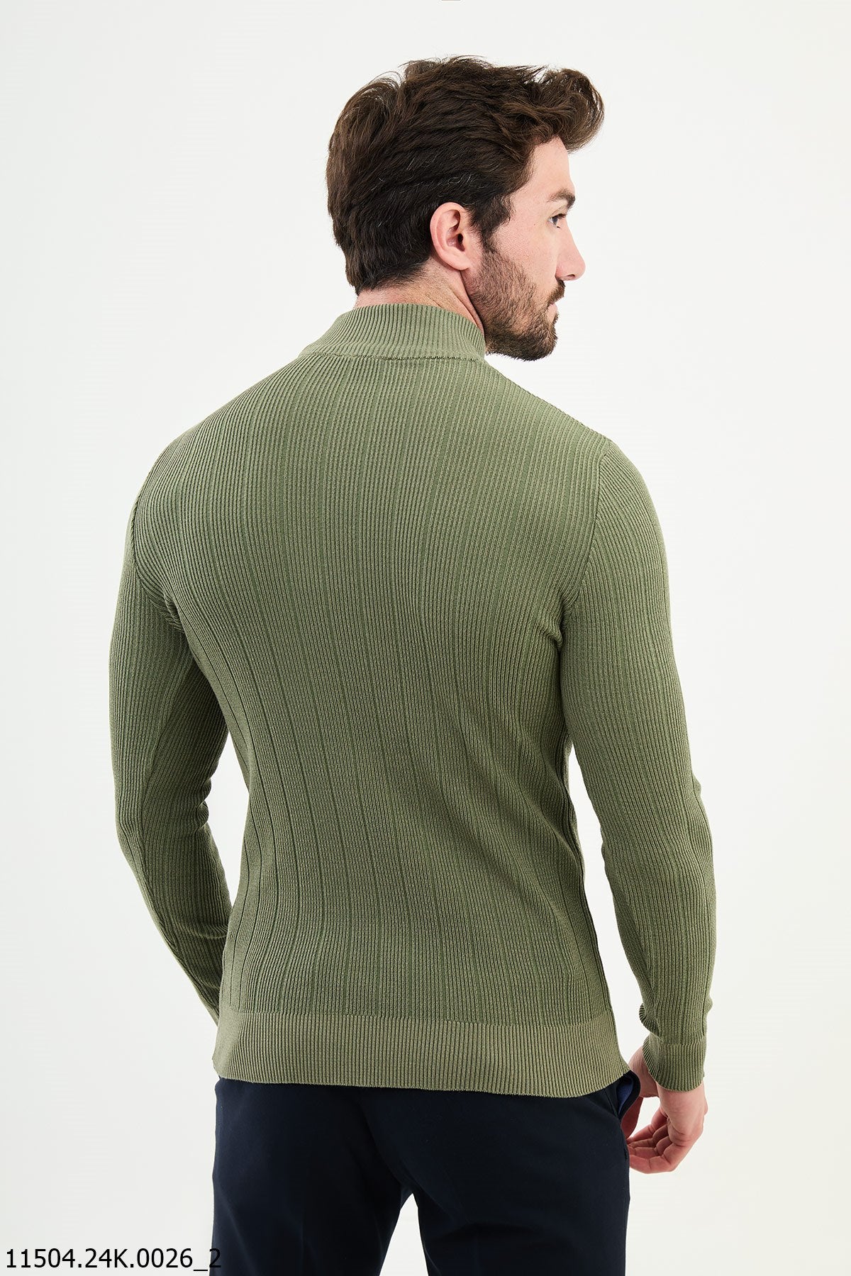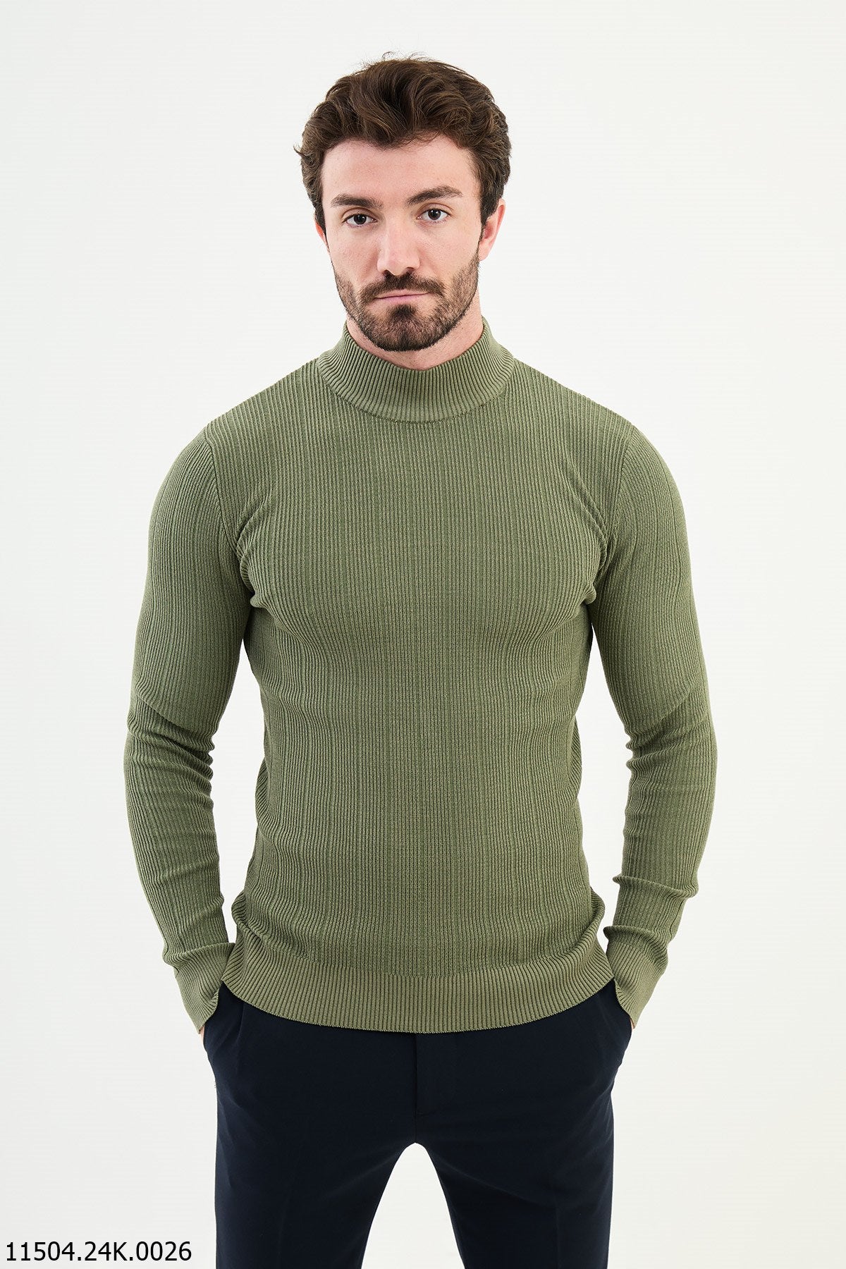 HolloMen Olive Green Ribbed Turtleneck Sweater.