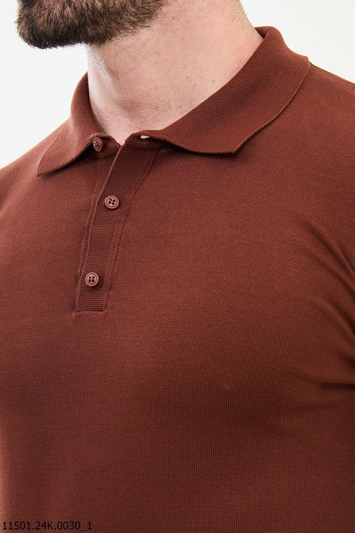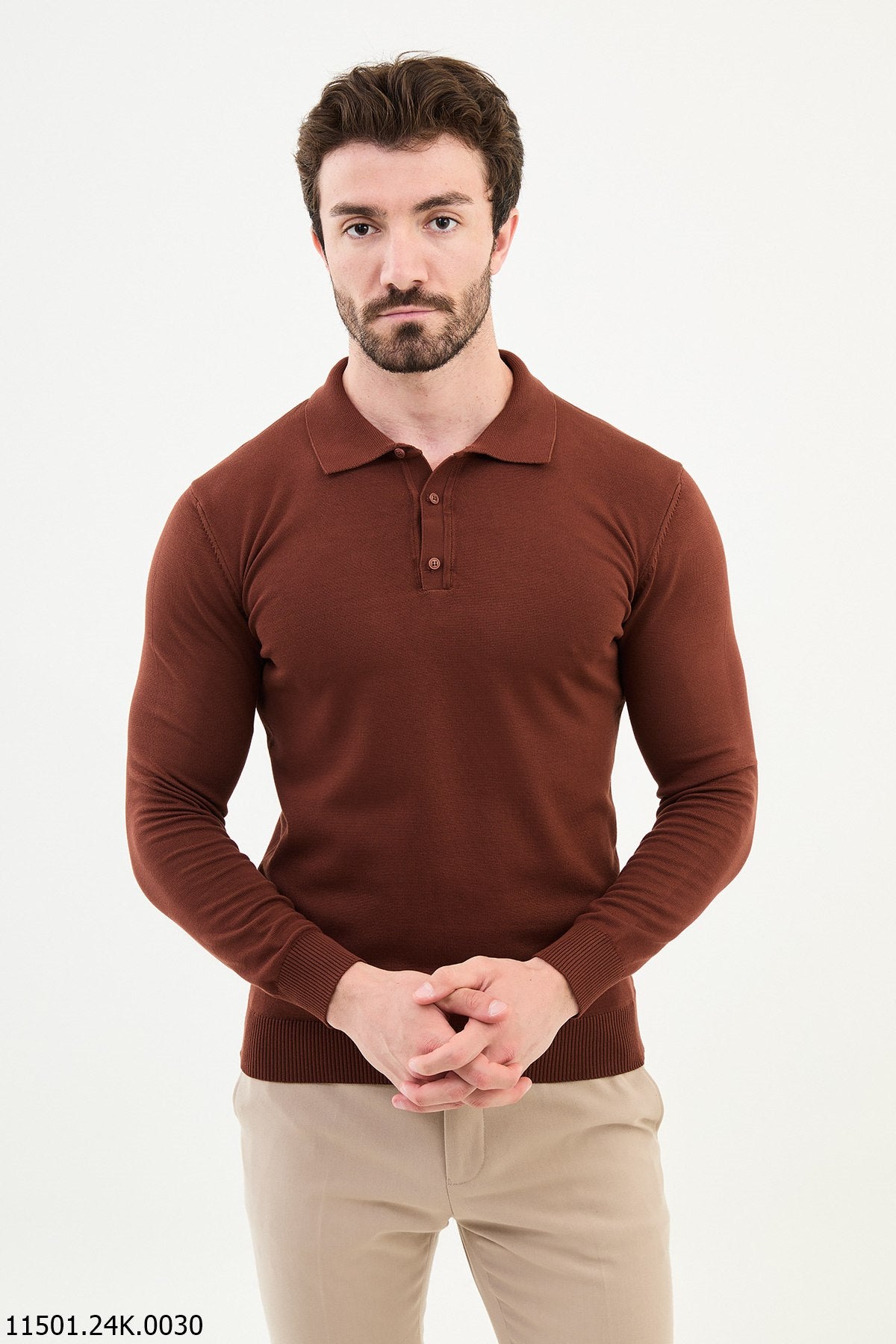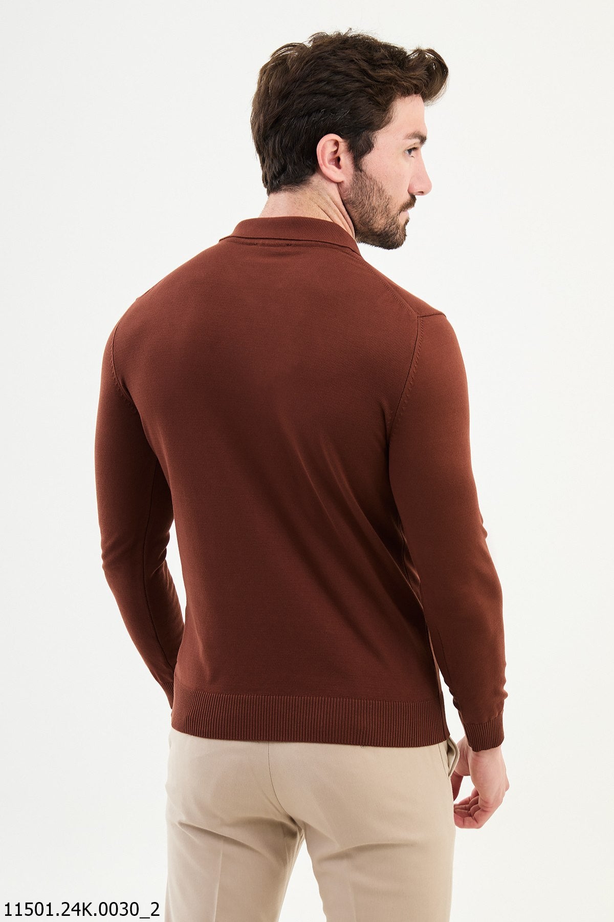 HolloMen Tile Brown Long-Sleeve Polo Sweater.