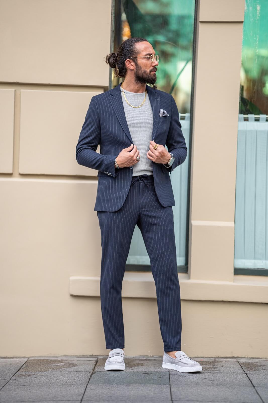 L'epitome della raffinatezza contemporanea con l'abito casual slim fit a quadri blu navy di HolloMen. Progettato in modo impeccabile per lasciare un ricordo indelebile, questo abito incarna pura eleganza e raffinatezza ineguagliabile, riflettendo il tuo gusto impeccabile.