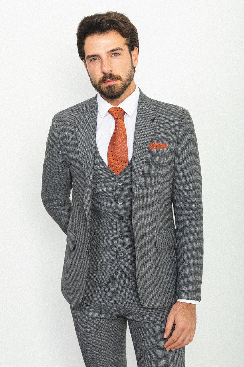 Gray Checkered Three-Piece Suit - Modern Sophistication