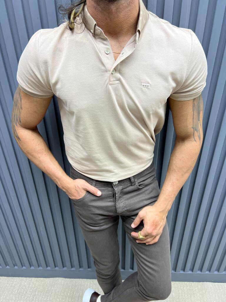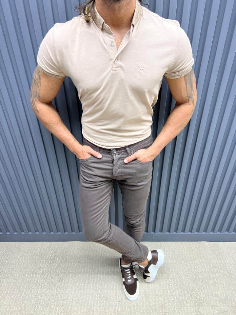 The Beige Knit T-Shirt effortlessly combines dapper style with cozy comfort. With its relaxed fit and soft texture, this knit t-shirt ensures comfort and impeccable style. Whether paired with tailored trousers for a polished ensemble or dressed down with jeans for a more laid-back vibe, the Beige Knit T-Shirt exudes an effortlessly dapper aesthetic.