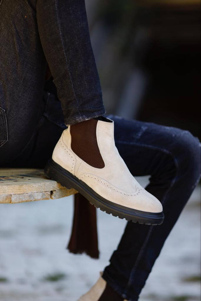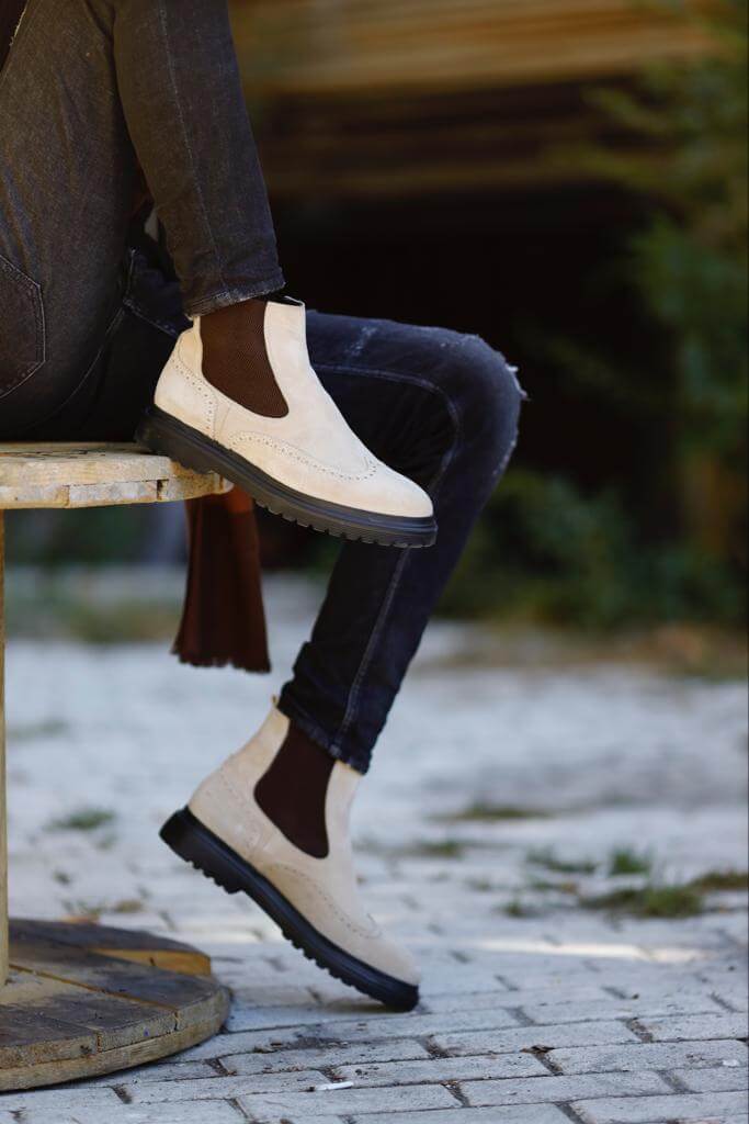 We're Featuring The Beige Nubuck Leather Chelsea Boots