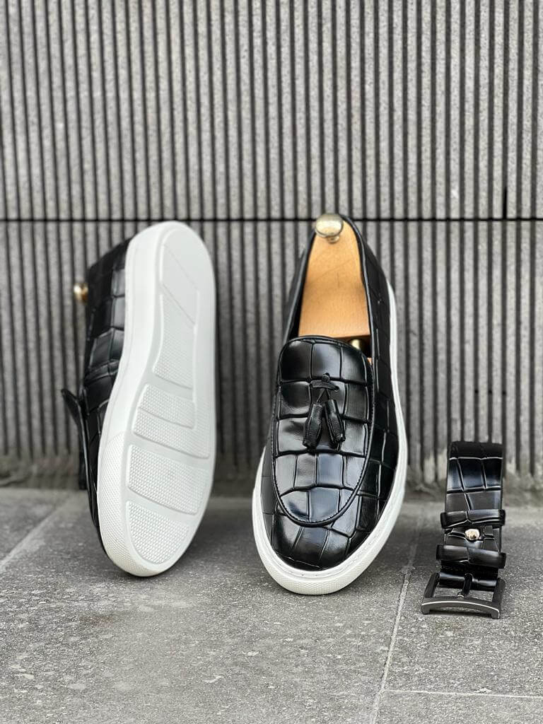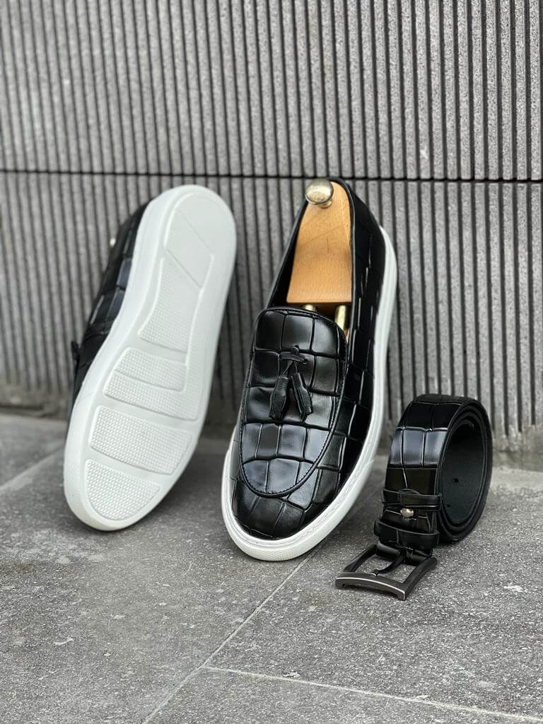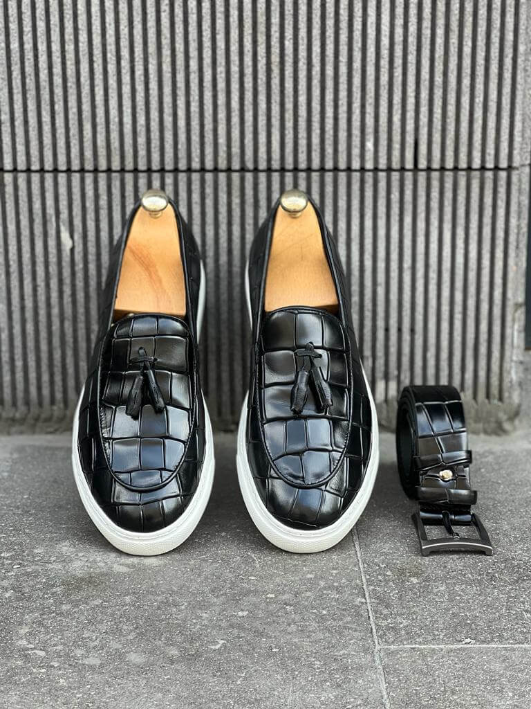 Experience effortless sophistication with the Black Tassel Slip-On Loafers – Seville Edition. Designed for the Spring-Summer season, these loafers feature a sleek silhouette and minimalist tassel detail that elevates any casual ensemble. Crafted from 100% genuine leather and built on a lightweight EVA sole, they ensure long-lasting comfort with refined flair.