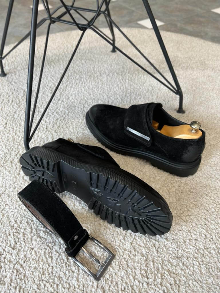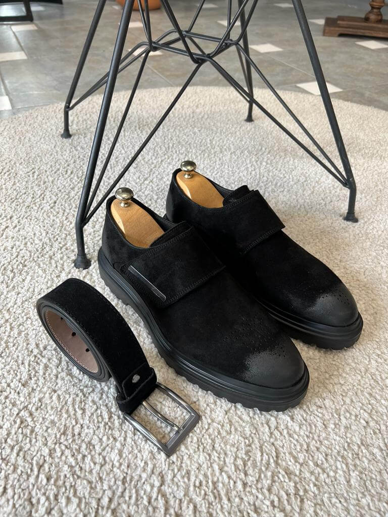 Refined and versatile, the Geneva Black Suede Single Buckle Monk Strap Loafers from HolloMen’s Fall-Winter collection are designed for men who appreciate understated elegance. Crafted from 100% suede leather, these loafers feature a sleek single buckle and a soft texture that adds sophistication to both formal and smart-casual outfits. Ideal for transitional weather and all-day comfort.
