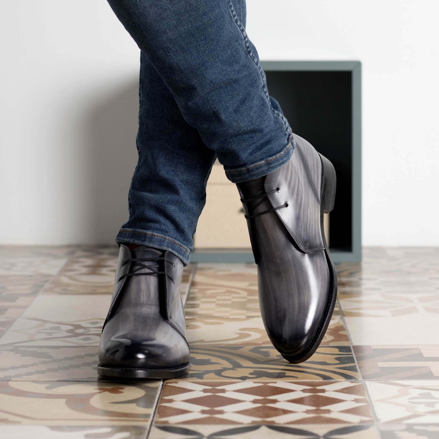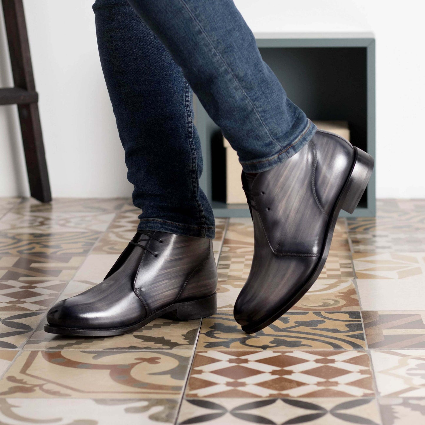 Custom Handmade Grey Patina Leather Chukka Boots - Goodyear Welted Sole.