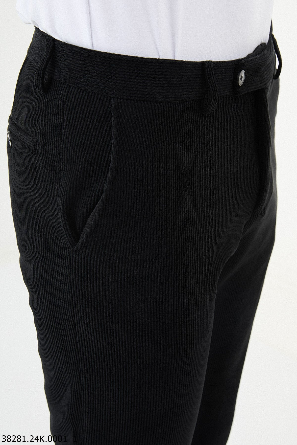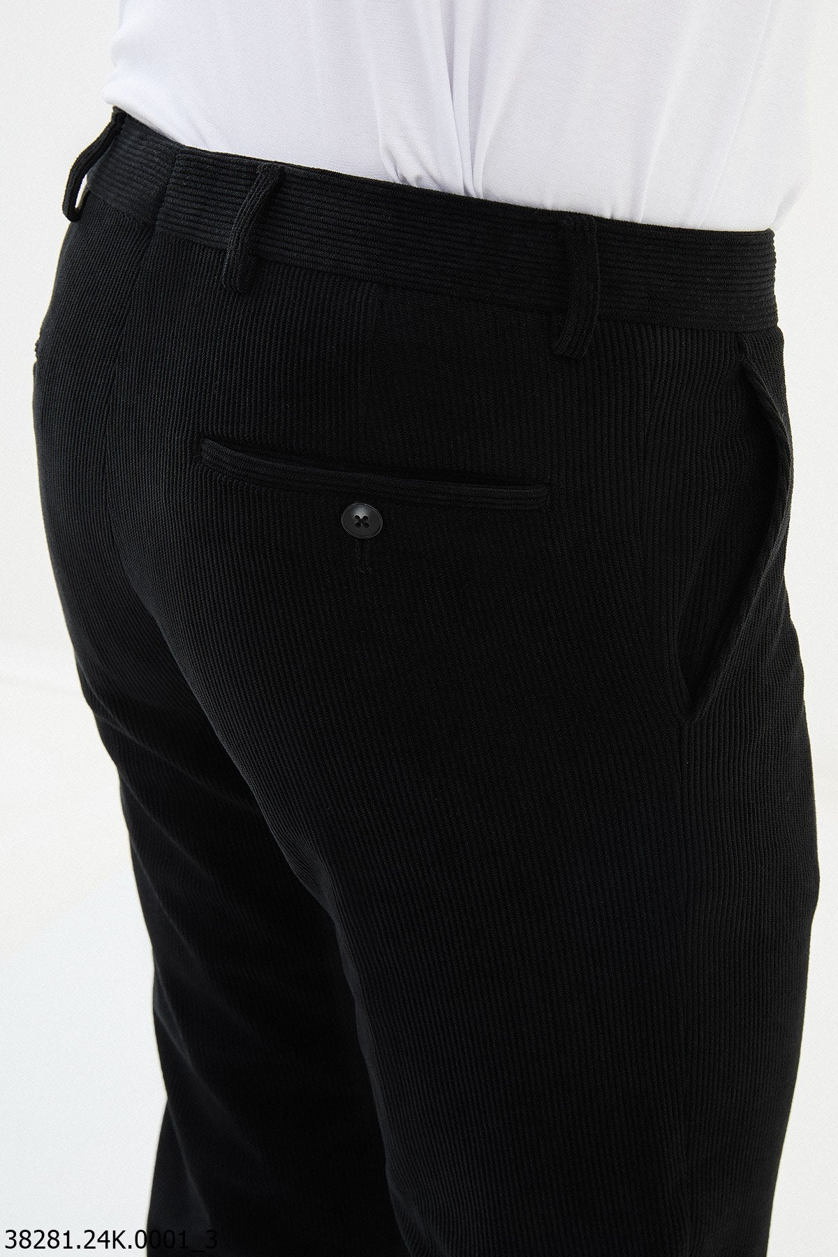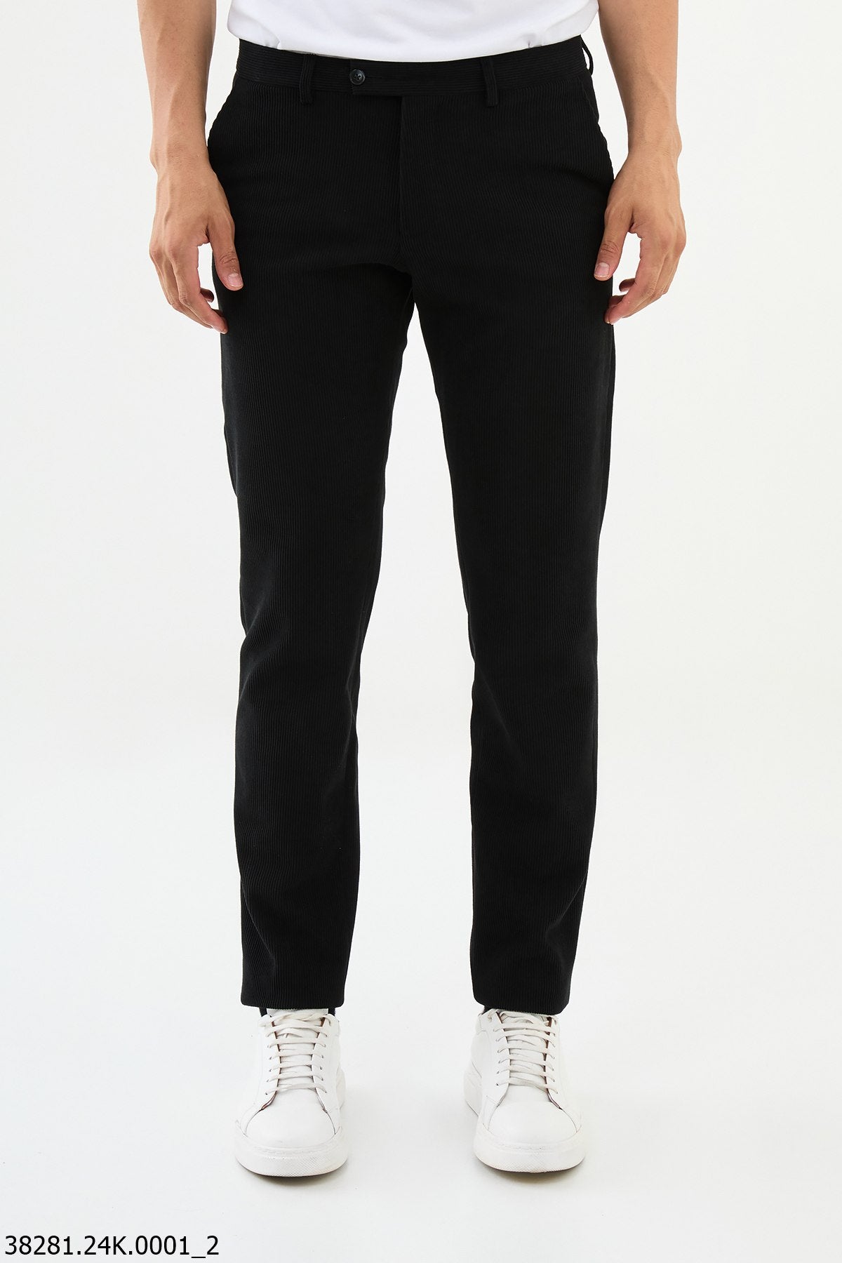 Elevate your wardrobe with the HolloMen Black Corduroy Slim-Fit Dress Pants, a perfect blend of modern style and timeless class.