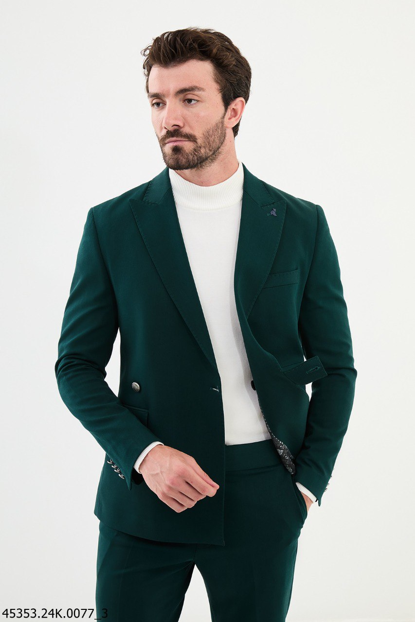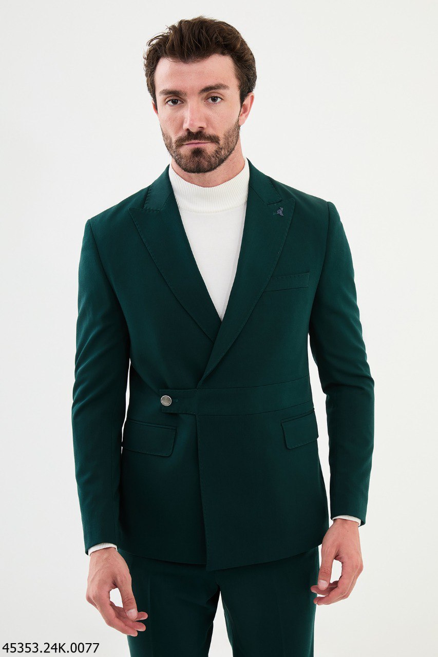 HolloMen Deep Green Modern Fit Single-Breasted Suit.