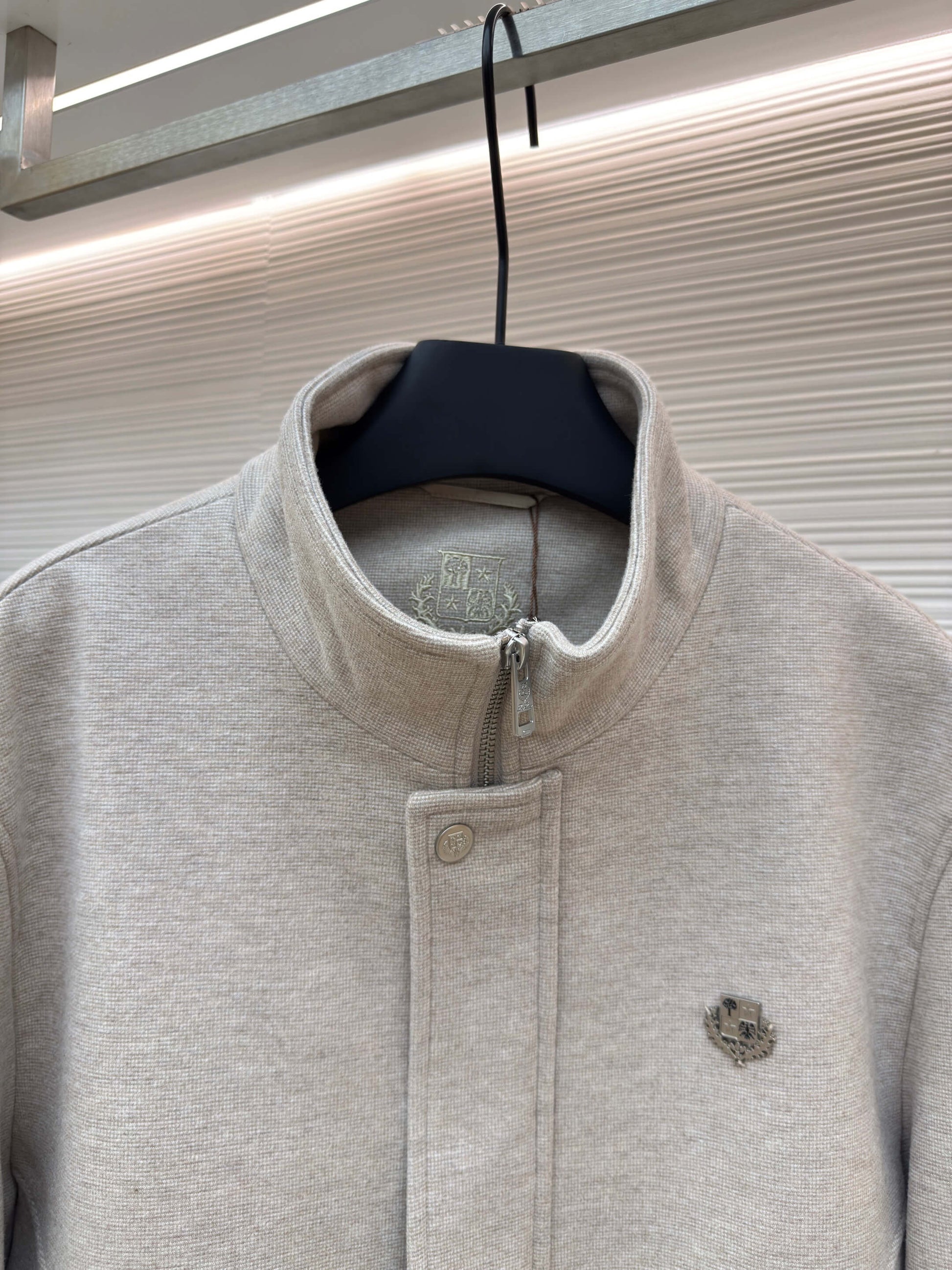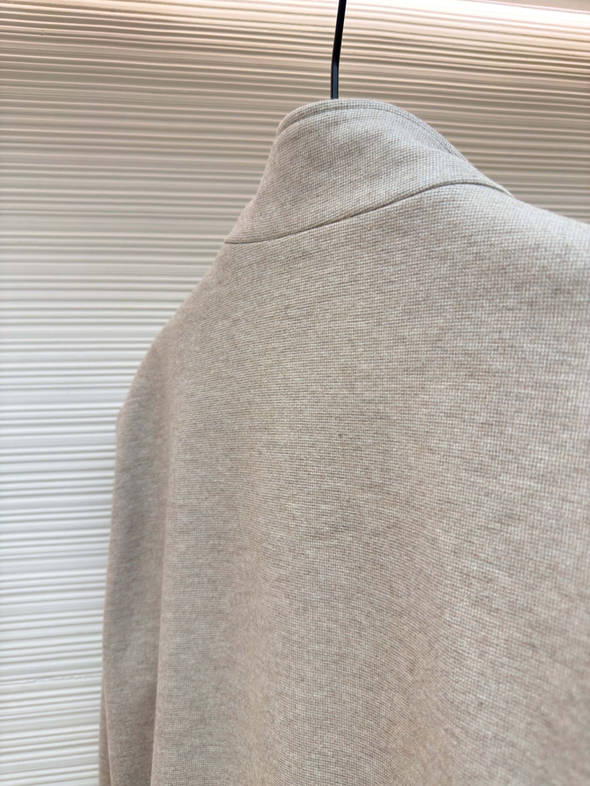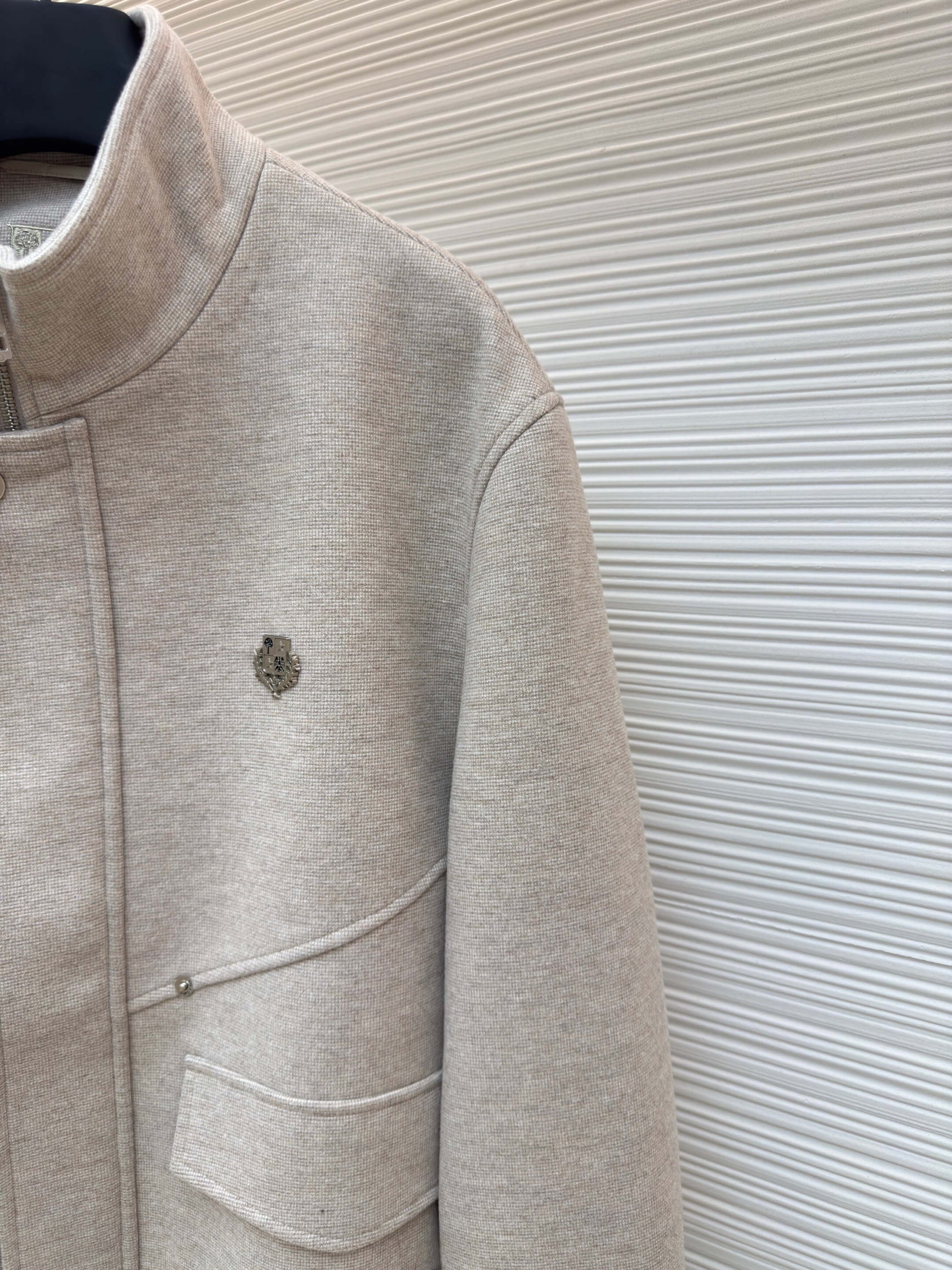Loro Piana Stand-up Collar Minimalist Cashmere Jacket- Light Beige