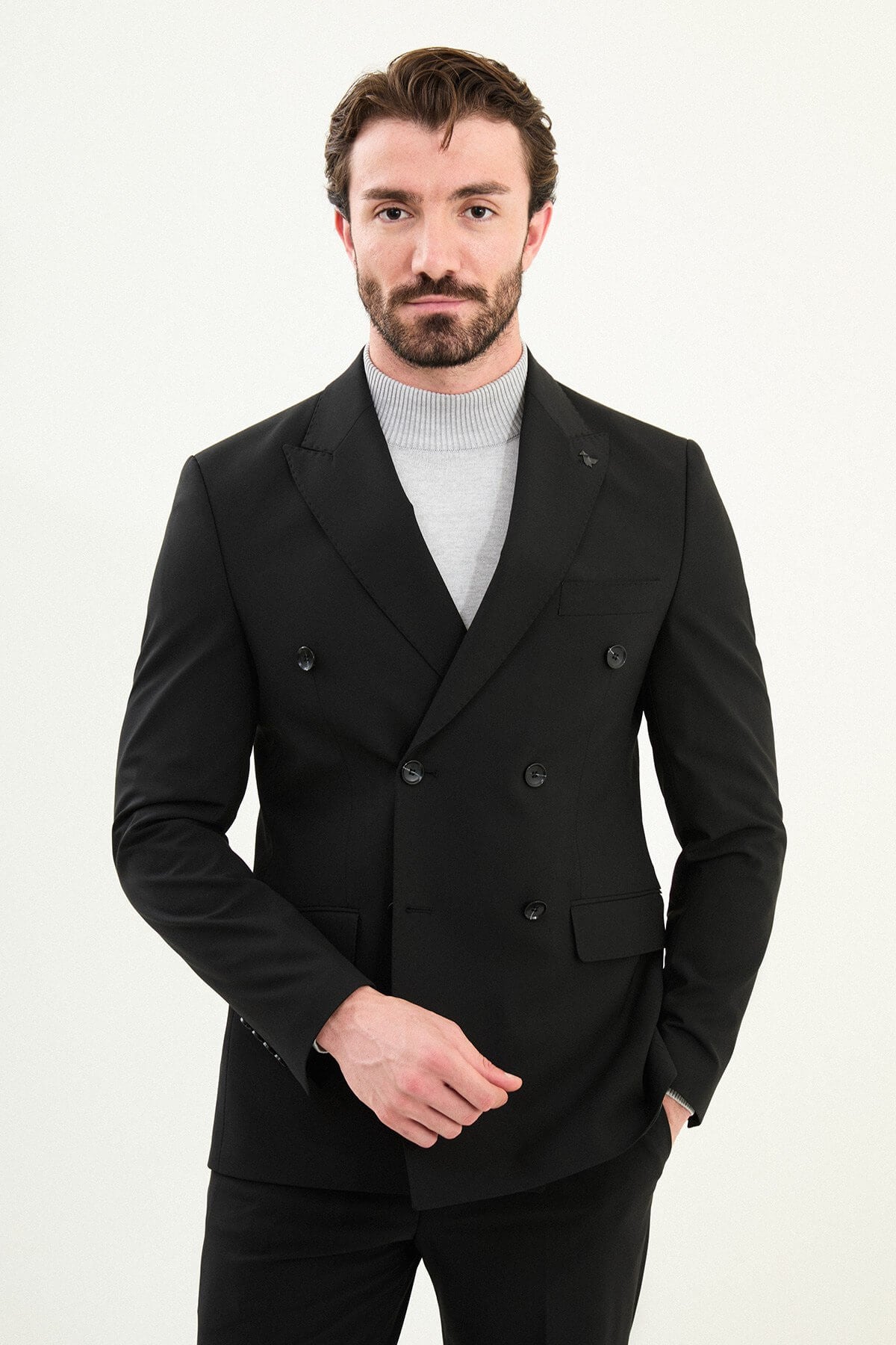 Men's Black Slim Fit Mono Collar Wool Men's Suit.