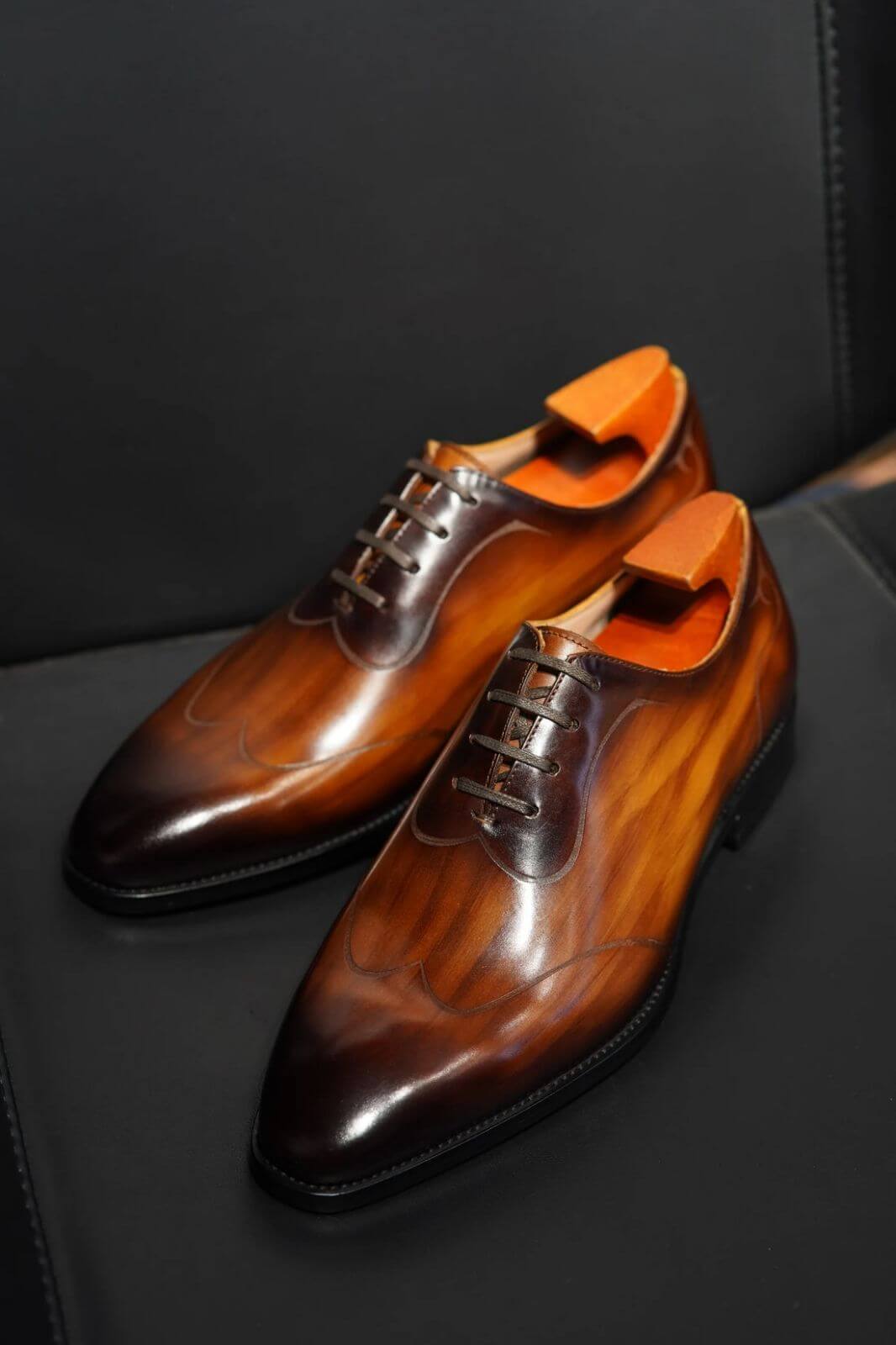 Add a touch of sophistication with the Regal Patina Oxfords in Amber Brown: