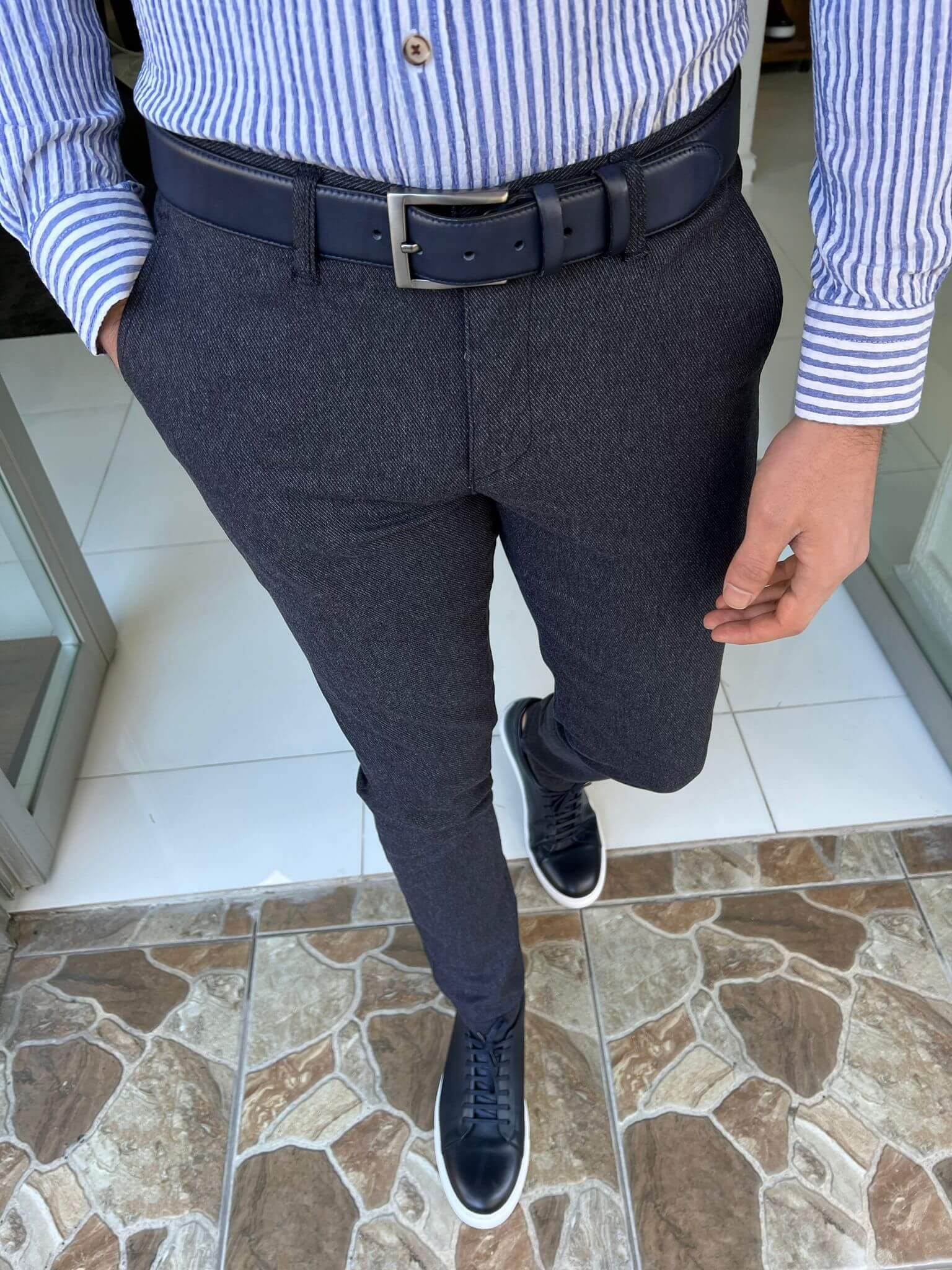 Elevate your wardrobe with the HolloMen Navy Blue Slim Fit Semi-Formal Pants, a premium piece from our Spring–Summer Collection. Designed with a tailored slim silhouette and enriched with subtle micro-pattern texture, these pants blend sophistication with breathable comfort.