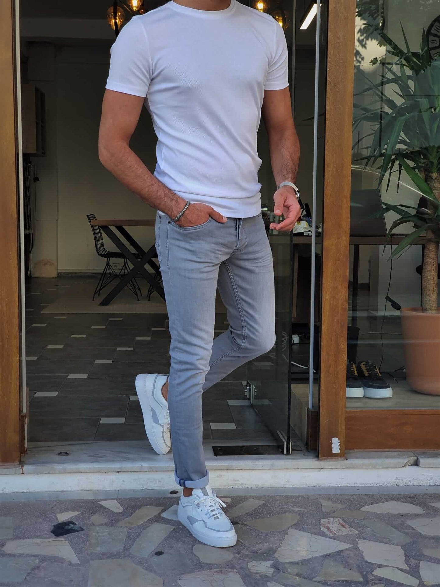 Slim-Fit Crewneck Printed Lycra White T-Shirt