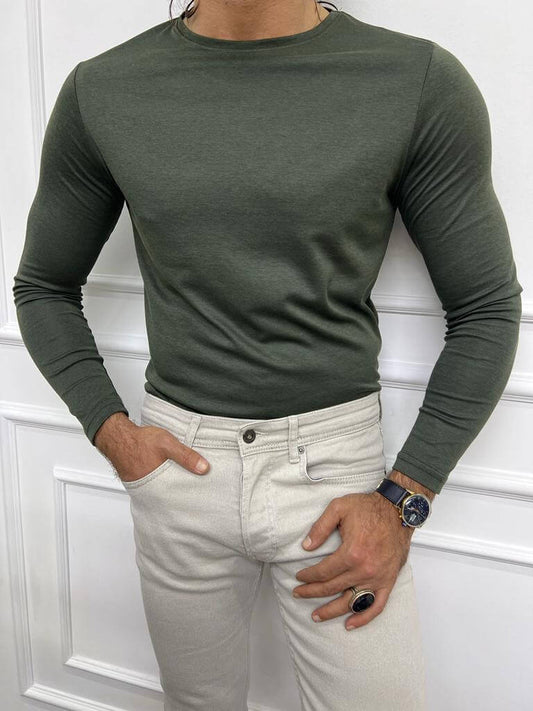 Camisola polo de homem verde de manga comprida em mistura de algodão.